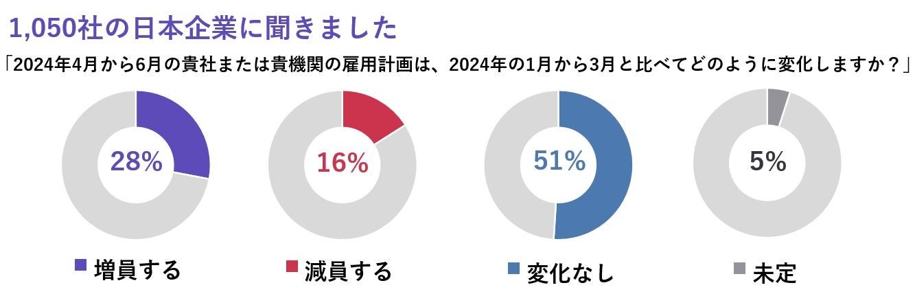 予測調査」の結果を発表します。調査結果は「2024年4-6月において、貴社または貴機関の雇用計画(契約社