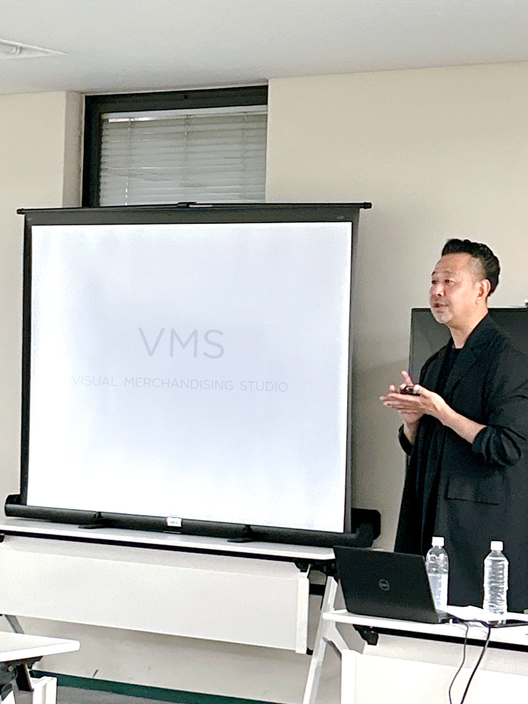 ヴィジュアルマーチャンダイジング=「VM」は、実店舗のコミュニケーションというファッションビジネスにおいての重要な役割を担っており、お客様や店頭の変化とともに進化してゆく必要があります。毎日ファッション業界の最前線に立って経験し、実際に現場で起こっている「今」を話せるVMSだからこそ、我々が教壇に立つ意味があると考えています。