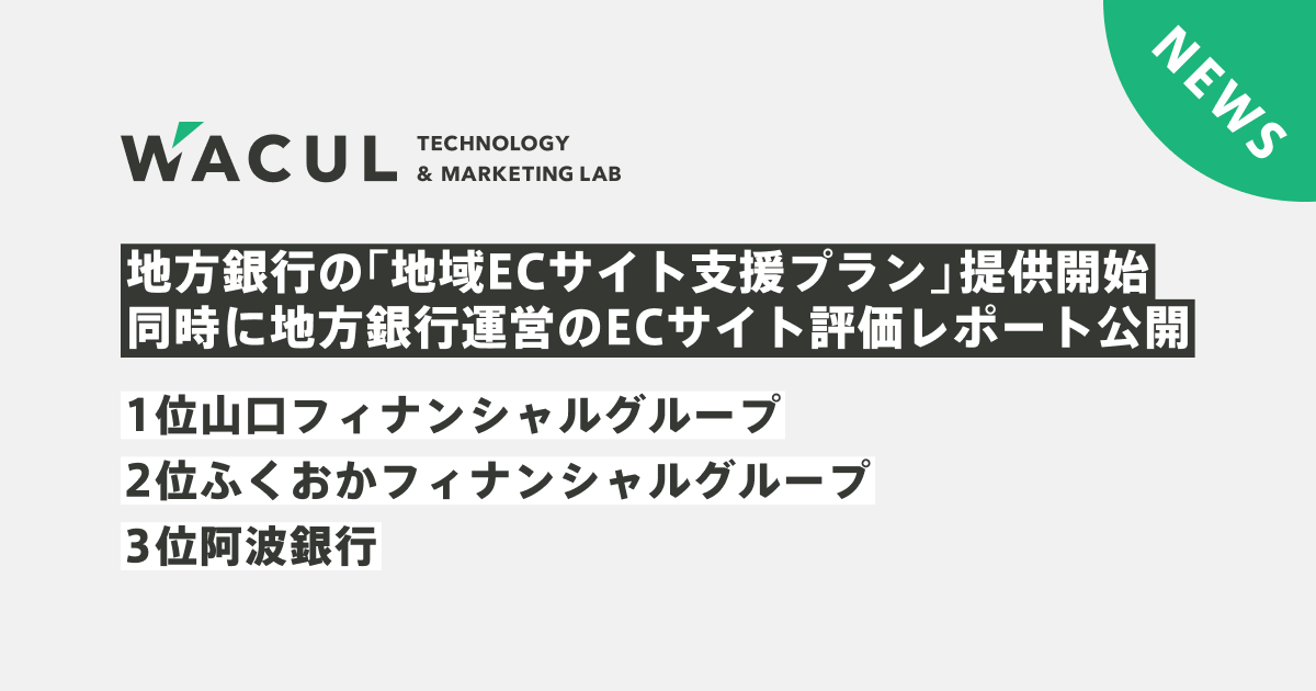 同時に、これからECサイトの運営を検討している地方銀行に対して、成果の上がるECサイト構築に向けた提言をすべく、すでに立ち上がっている地方ECサイトに関する分析レポート「地銀が運営するECサイトの評価レポート 〜 定石はほとんど使われていない」(https://wacul.co.jp/lab/regional-bank-ec-ranking/)を発表しました。