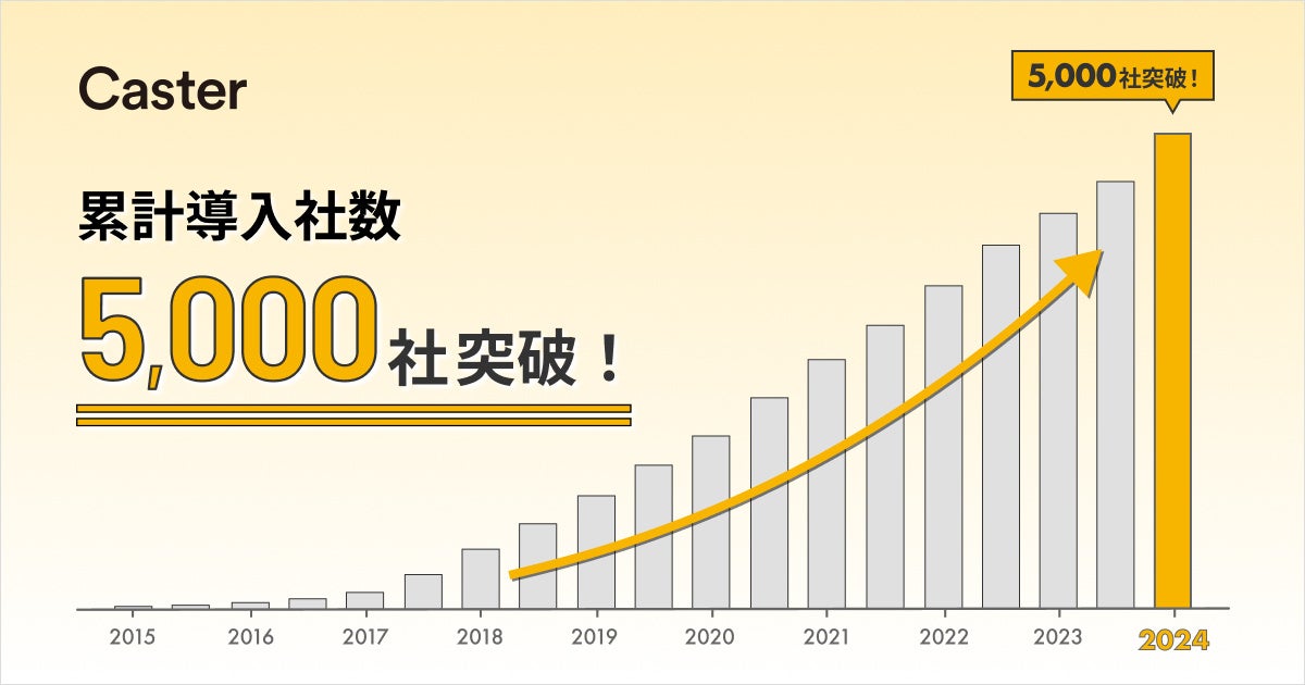 「リモートワークを当たり前にする」をミッションに掲げる株式会社キャスター(本社:東京都千代田区、代表取締役 中川祥太、以下「キャスター」)は、提供しているリモートアシスタントサービス「CASTER BIZ」シリーズを含む提供サービスの累計導入社数が5,000社(※1)を突破したことをお知らせいたします。