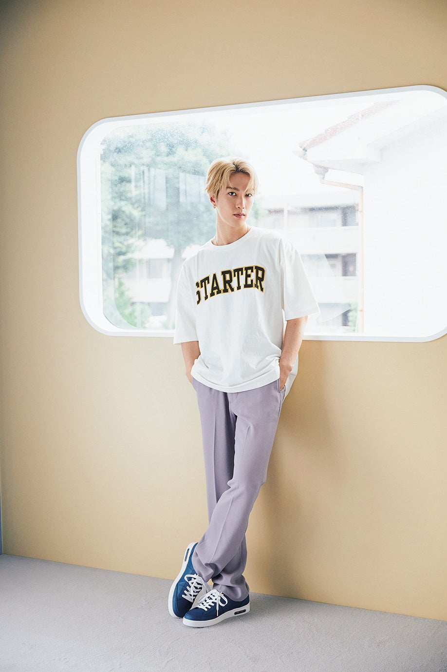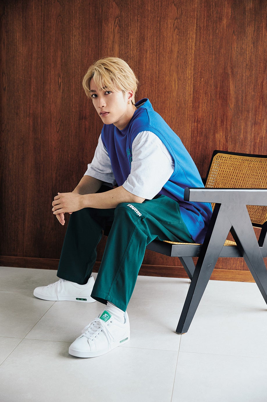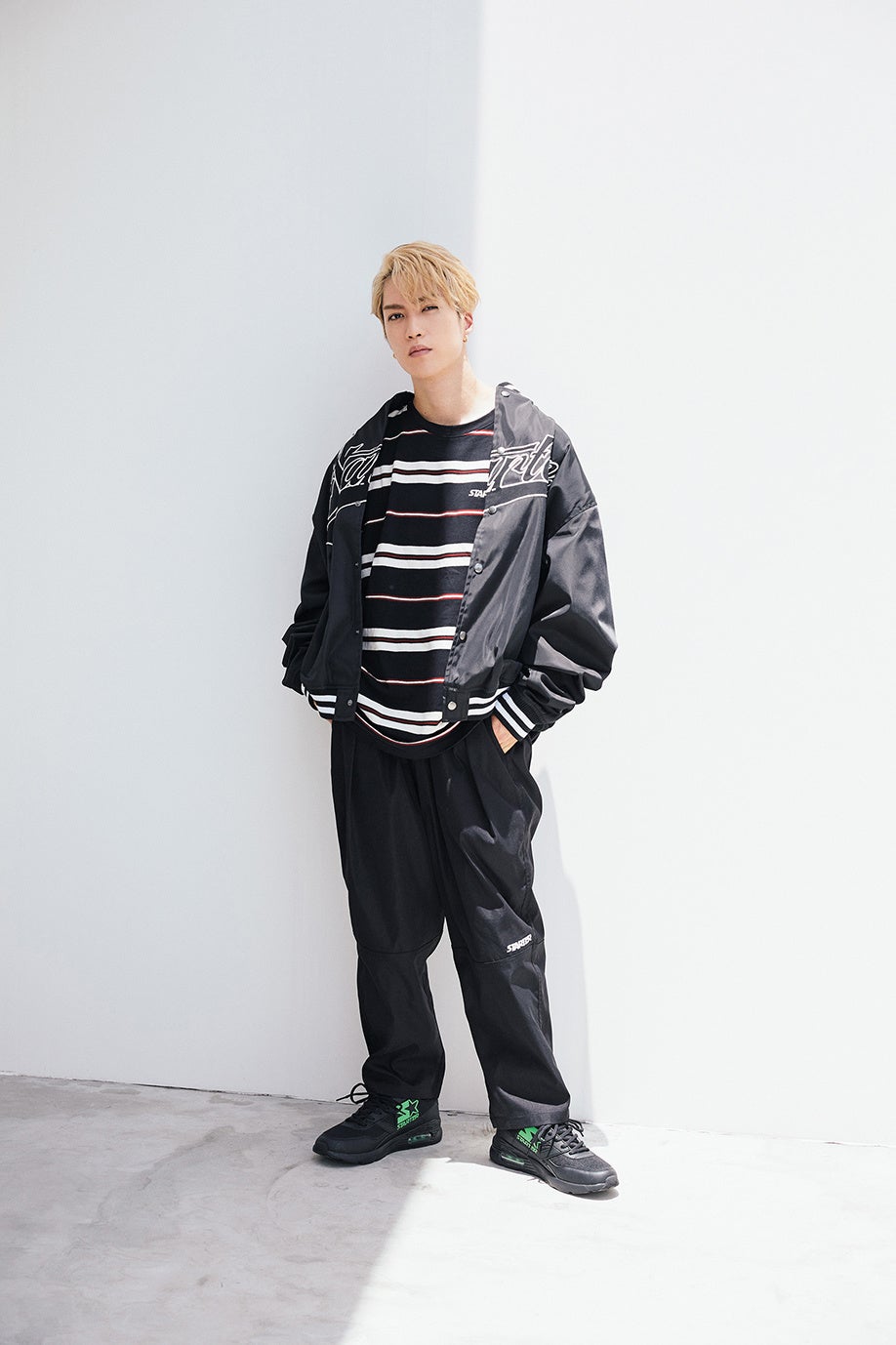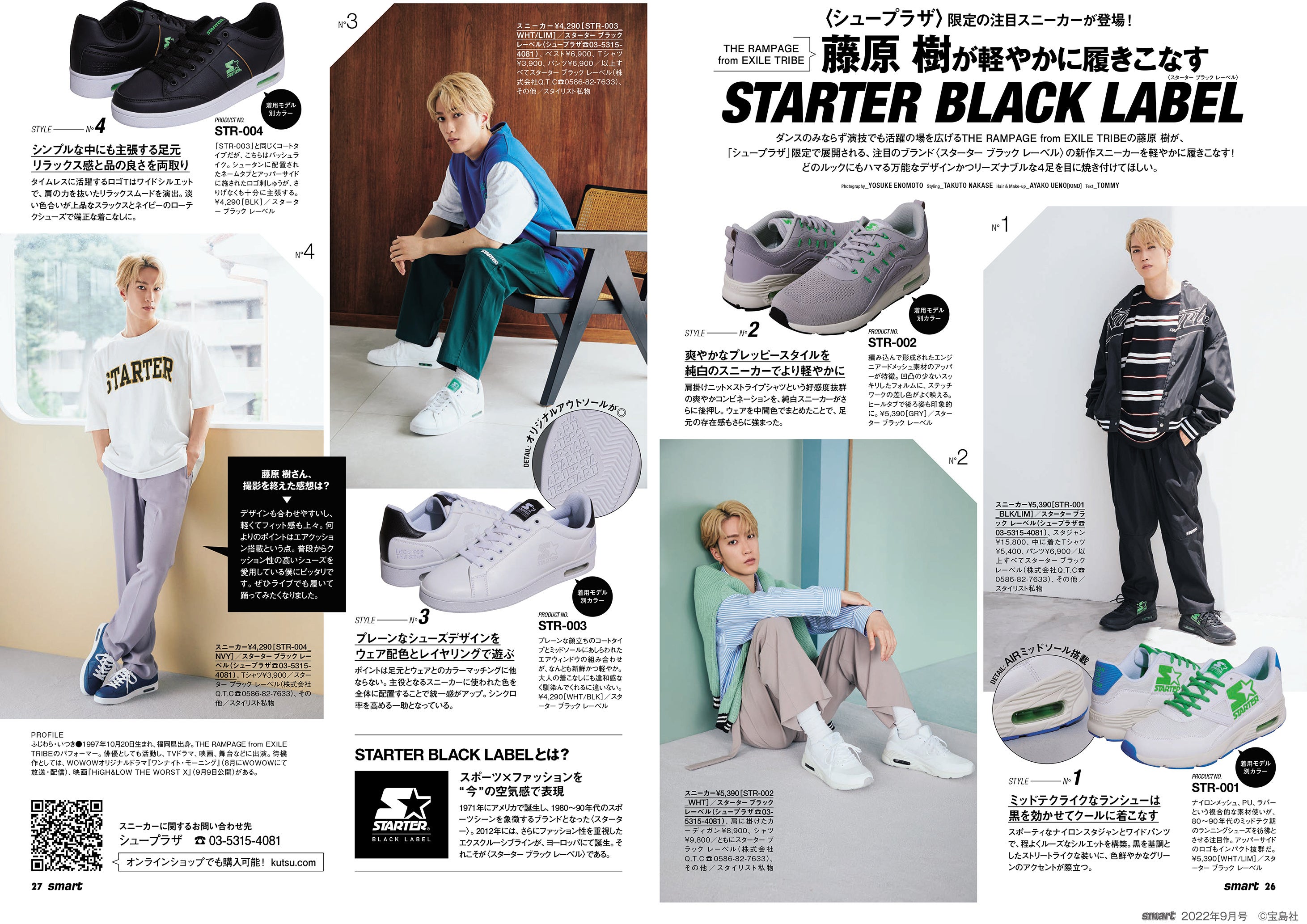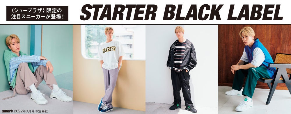 誌面では、THE RAMPAGE from EXILE TRIBE の藤原 樹さんが、爽やかなプレッピースタイル、クールなブラックコーデ、品のあるリラックススタイルなど、さまざまなコーディネートで「スターター ブラック レーベル」の新作スニーカーを履きこなしています。