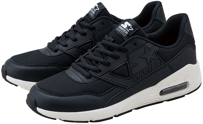 今回「smart」で紹介される「スターター ブラック レーベル」は、ナイロンメッシュ、PU、ラバーの複合的な素材使いが、80~90年代のミッドテク期のランニングシューズを彷彿とさせるSTR-001、エンジニアードメッシュ素材のアッパーに、ステッチワークの挿し色がよく映える。ヒールタブで後ろ姿も印象的なSTR-002、プレーンな顔立ちのコートタイプとミッドソールにあしらわれたエアウィンドウの組み合わせが、新鮮かつ軽やかで、大人の着こなしにも違和感なく馴染んでくれそうなSTR-003、バッシュライクなコートタイプで、シュータンに配置されたネームタブとアッパーサイドに施されたロゴ刺繍が、さりげなくも十分に主張するSTR-004の全4タイプです。