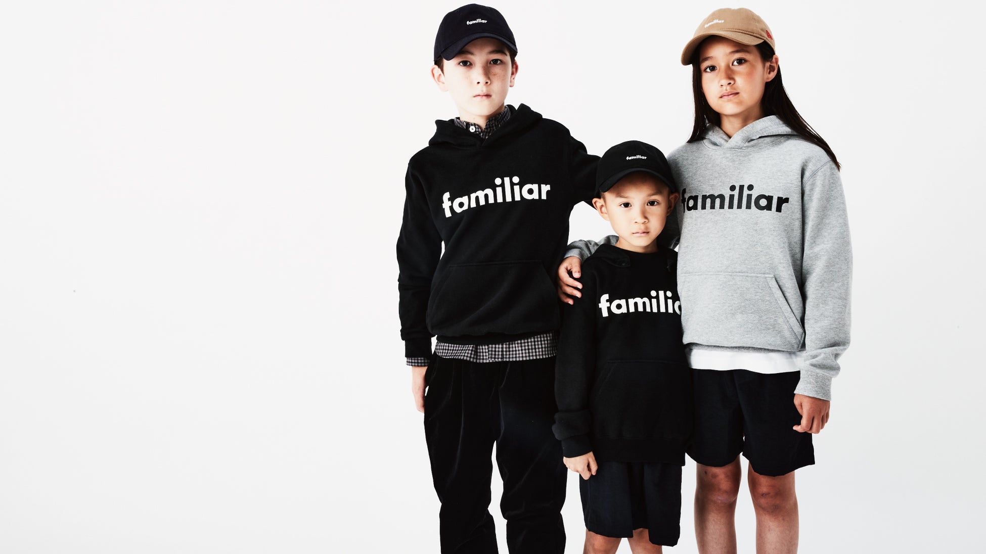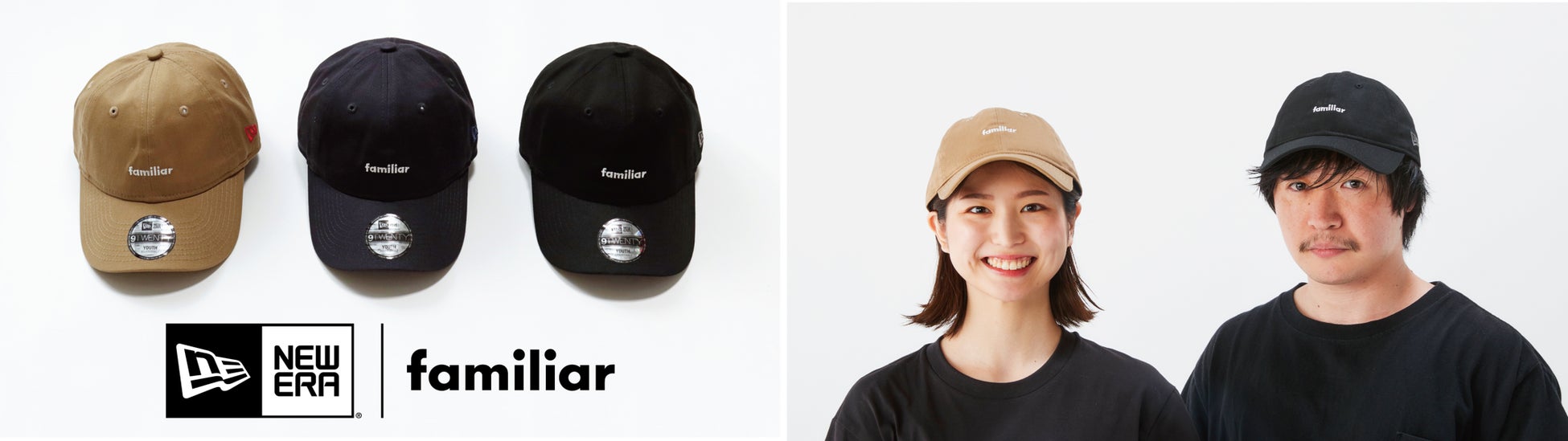 さらに、familiarのロゴを刺繍したNEW ERA®〈9TWENTY™〉のコラボレーションアイテムも制作。親子でリンクコーデを楽しめるサイズ展開で、ベージュ・ブラック・ネイビーのベーシックな3色をご用意。シンプルなデザインで、普段使いにおすすめです。この機会にぜひ、ファミリアの新たなラインナップをお楽しみください。