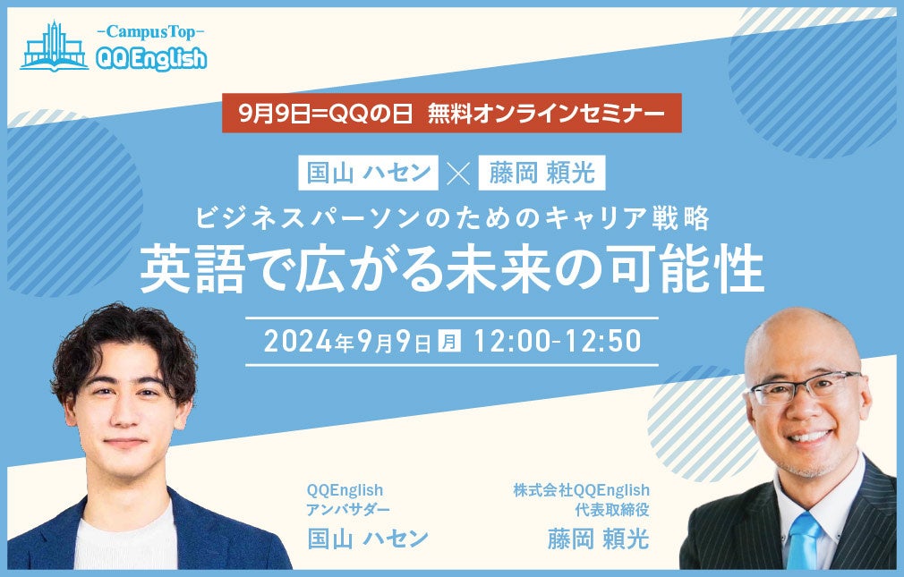 【ビジネスパーソン必見】元TBSアナウンサー国山ハセンさん×QQEnglish代表藤岡頼光の無料オンラインセミナーを9月9日「QQの日」に開催します!