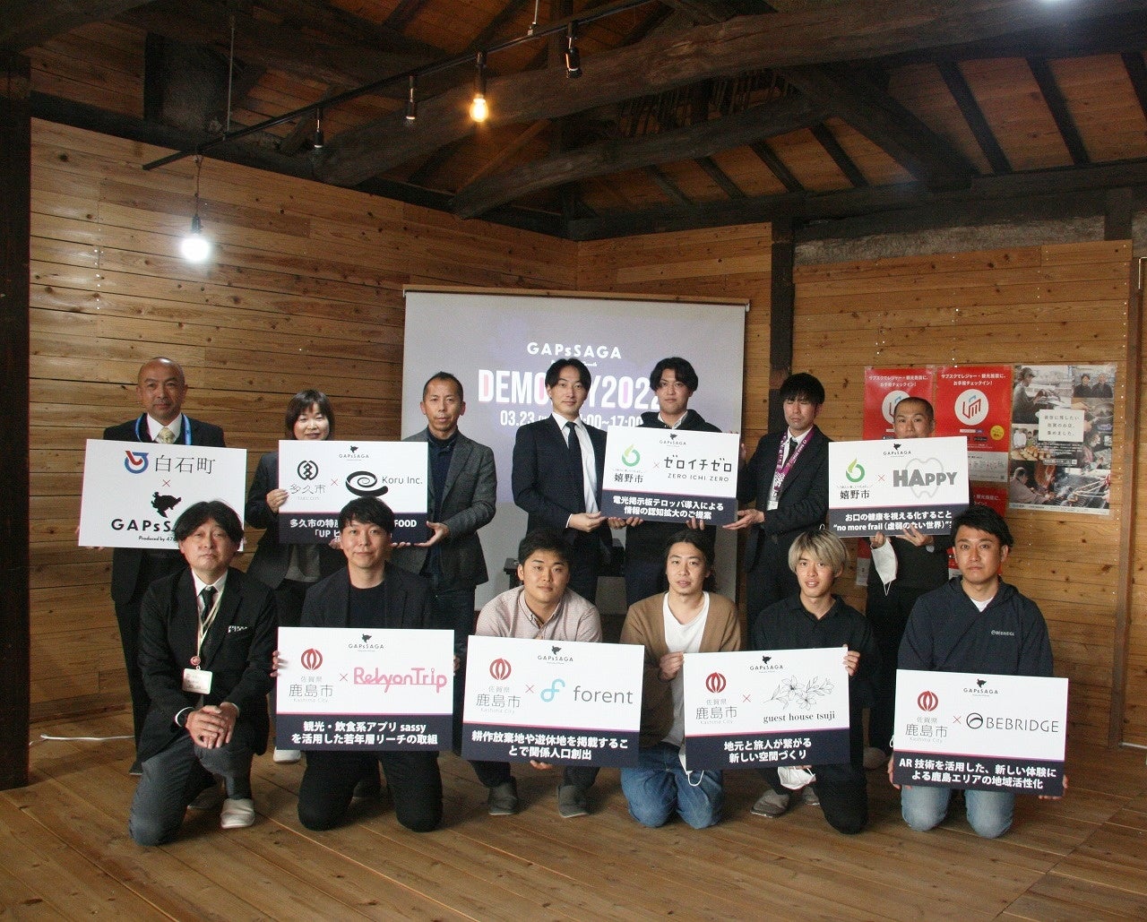 エスビージャパン株式会社(代表取締役:中元英機、 以下当社)が運営する佐賀県初の自治体オープンイノベーションイベント「GAPs SAGA」(ギャップスさが)では、3月23日(水)に佐賀市内のLIGHTHOUSE (佐賀市唐人2-4-2-2F)にて、DEMODAYを開催しました。そこでは、地域課題を提示したホストタウンの嬉野市・白石町・多久市・鹿島市と、全国のスタートアップ7社による課題解決に向けた企画プレゼンを行いました。