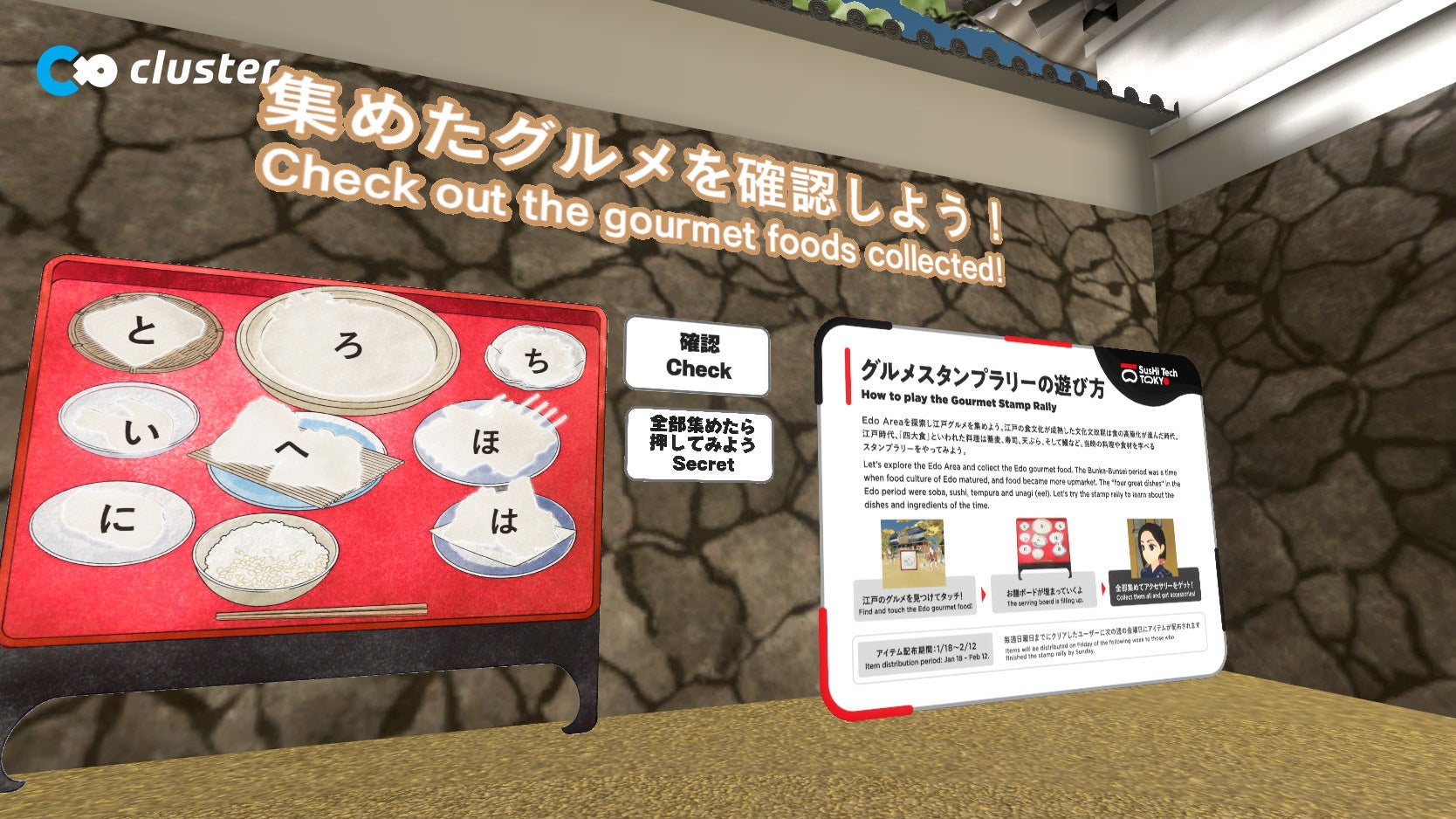 Edo Areaを探索し江戸グルメを集めるスタンプラリーが遊べます。