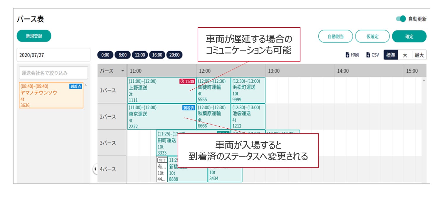 荷待ちが予想される車両の早期発見により、荷待ち時間削減へ