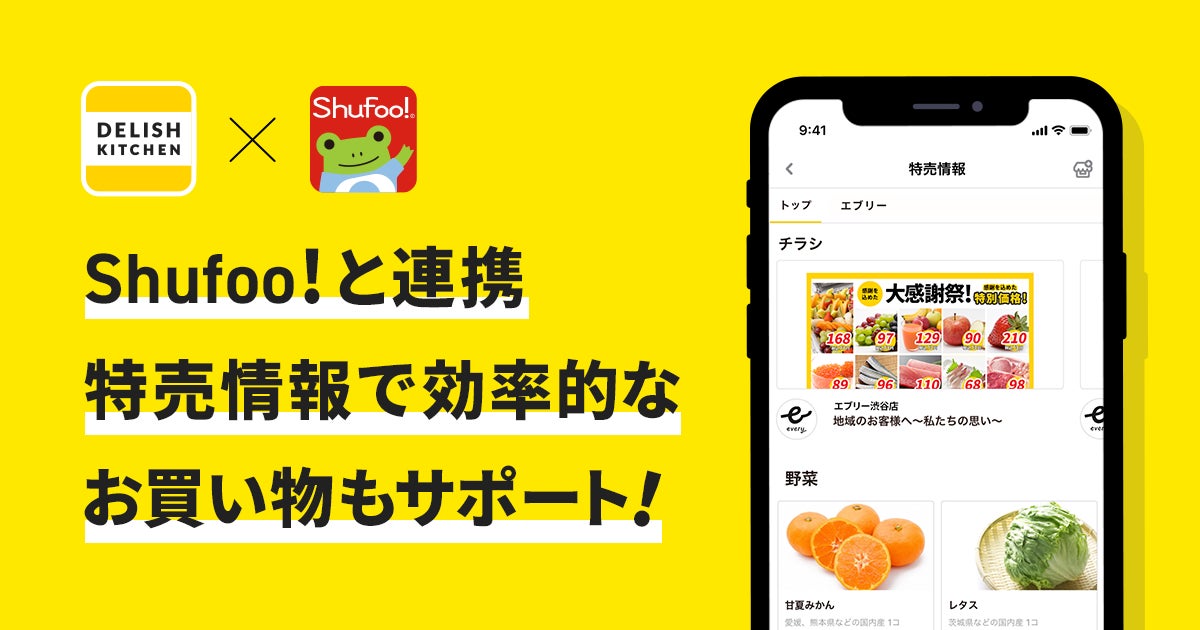 「DELISH KITCHEN」が「Shufoo!」と連携し、チラシの掲載店舗が大幅に拡大!特売情報から献立検討をサポート!