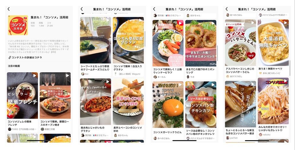 2022年3月25日から4月12日まで実施したイベントタイアップ「集まれ!コンソメ活用術」で155件のショート動画が投稿され、総再生数は90万回を超えました。