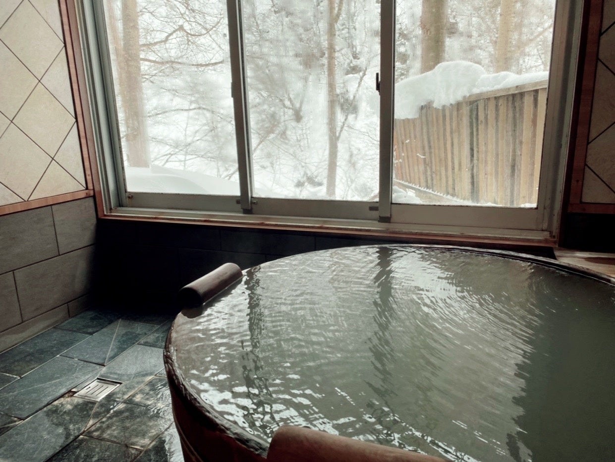 寒い冬の「雪見風呂」は雪が降る地域ならではの贅沢!白濁温泉で暖まりながら雪景色を堪能して頂いた後は、ご指定頂いたお好みのお部屋で雪見アイスを食べてひんやりとクールダウン!