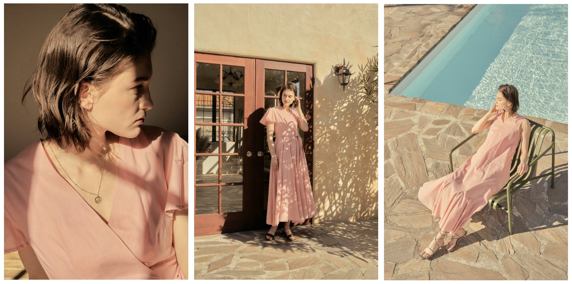 シリーズの中でも人気のワンピース「マドモアゼルのドレス」、「夏の月影のドレス」2型に、肌なじみの良いピンクを【TATRAS CONCEPT STORE】限定カラーとして別注しました。