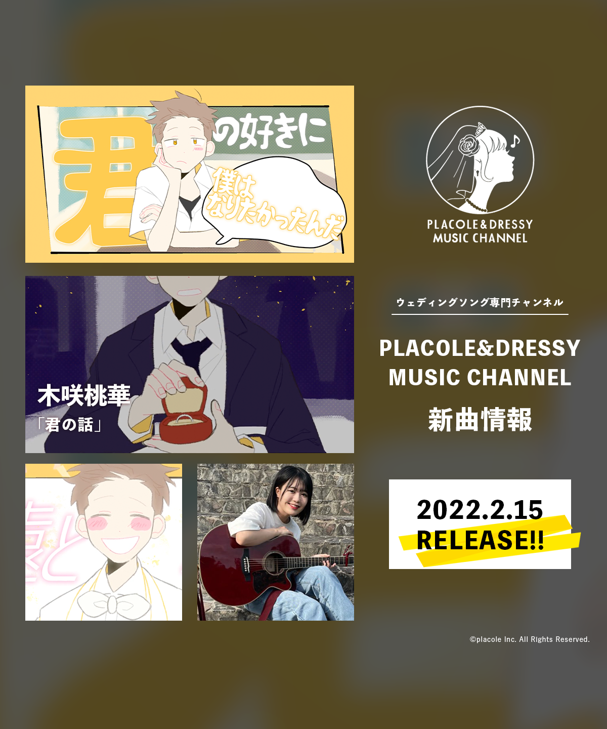 2月はSNSのフォロワー90万人越えのZ世代シンガーソングライター木咲桃華とコラボ!ウェディングソング専門チャンネル「PLACOLE&DRESSY MUSIC CHANNEL」が新曲を発表!
