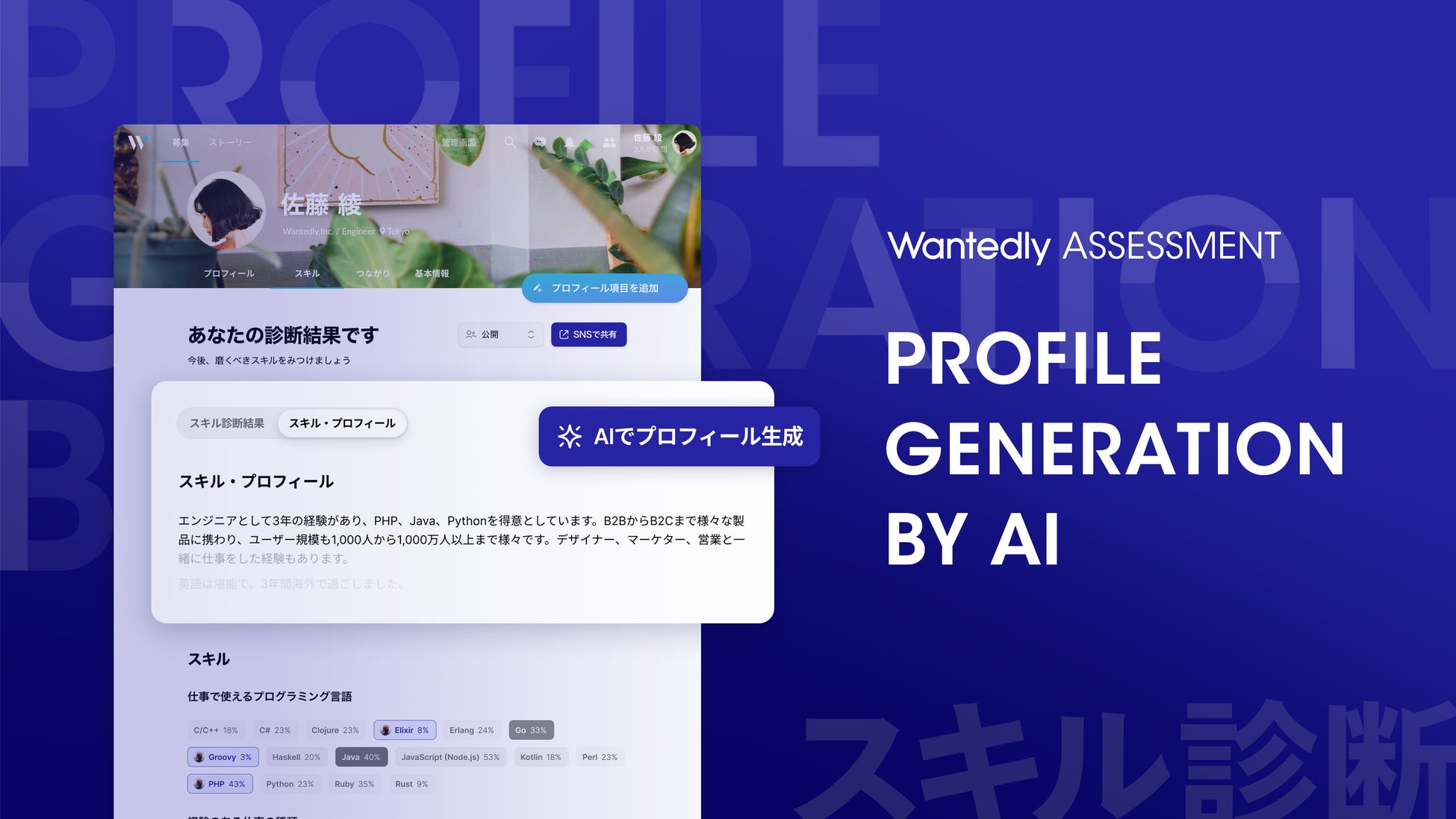 Wantedly Assessment「スキル診断」に新機能追加/診断結果をもとに、生成AIが「スキル・プロフィール」を自動作成