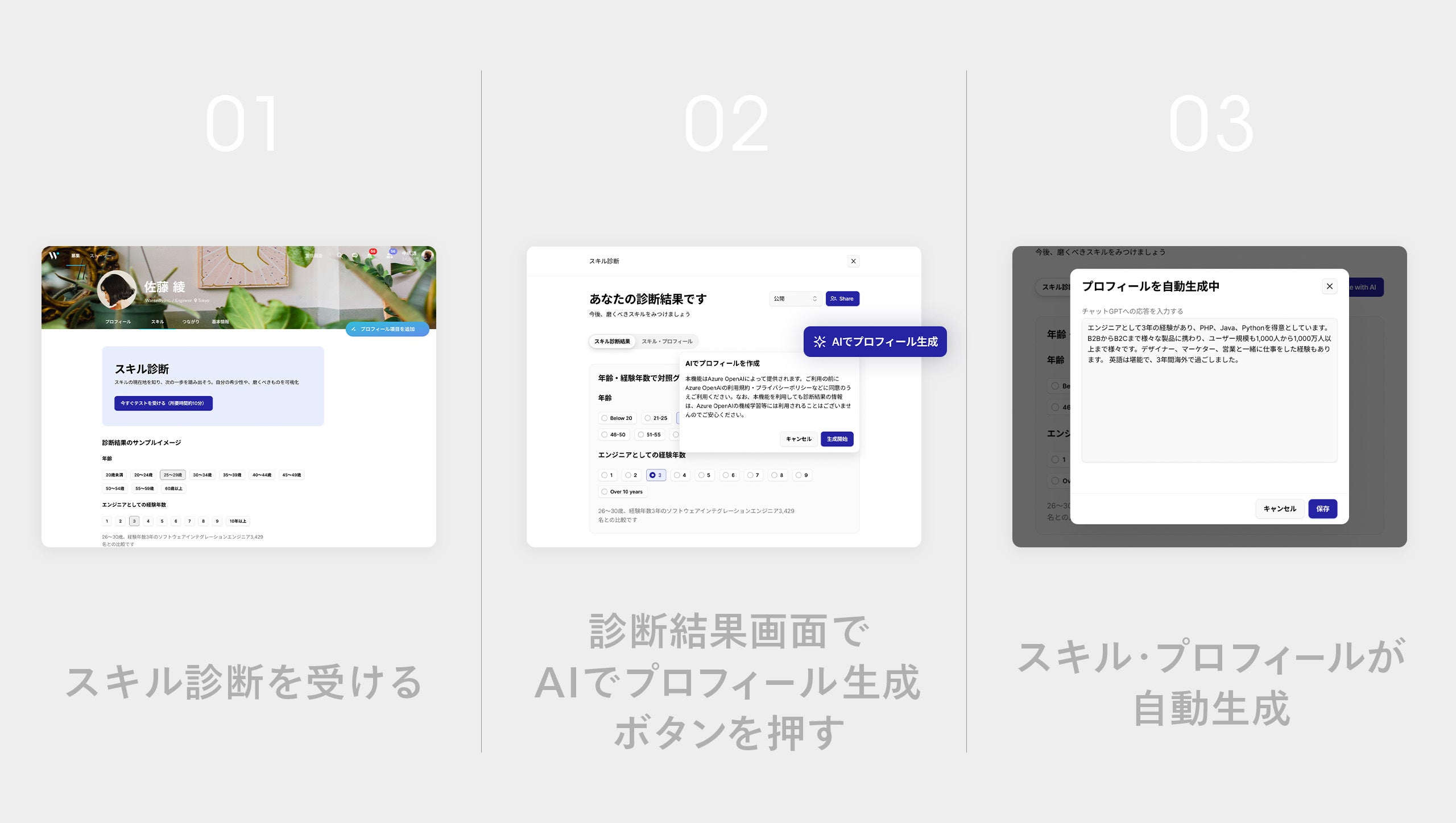 ⑤診断結果をもとに生成AIが「スキル・プロフィール」を自動作成(所要時間約30秒)