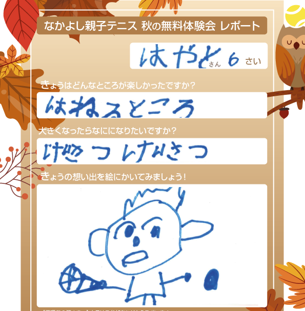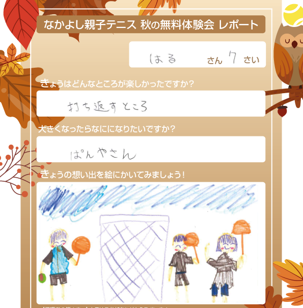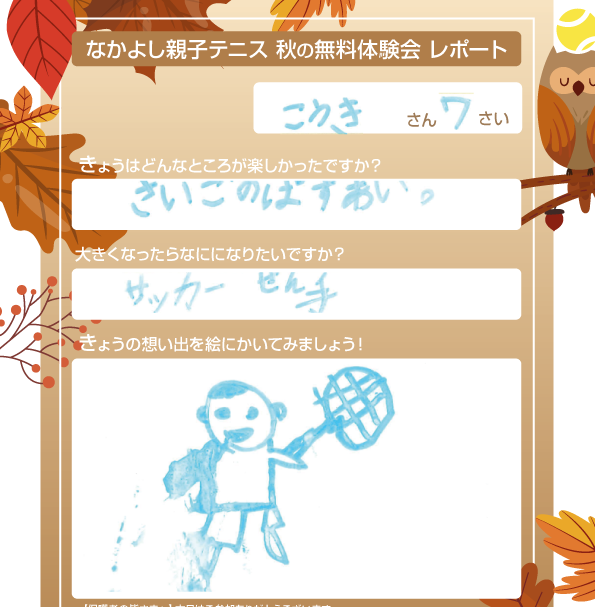 秋の休日 楽しく親子の思い出作り。 なかよし親子テニス秋の無料体験会は今年も好評のうちに終了しました。