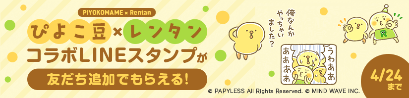 株式会社パピレス(東証スタンダード 3641、所在地:東京都千代田区、代表取締役:松井康子)は、2023年3月28日(火)に、「ぴよこ豆」×「Renta!」コラボLINEスタンプの無料配布を発表いたします。