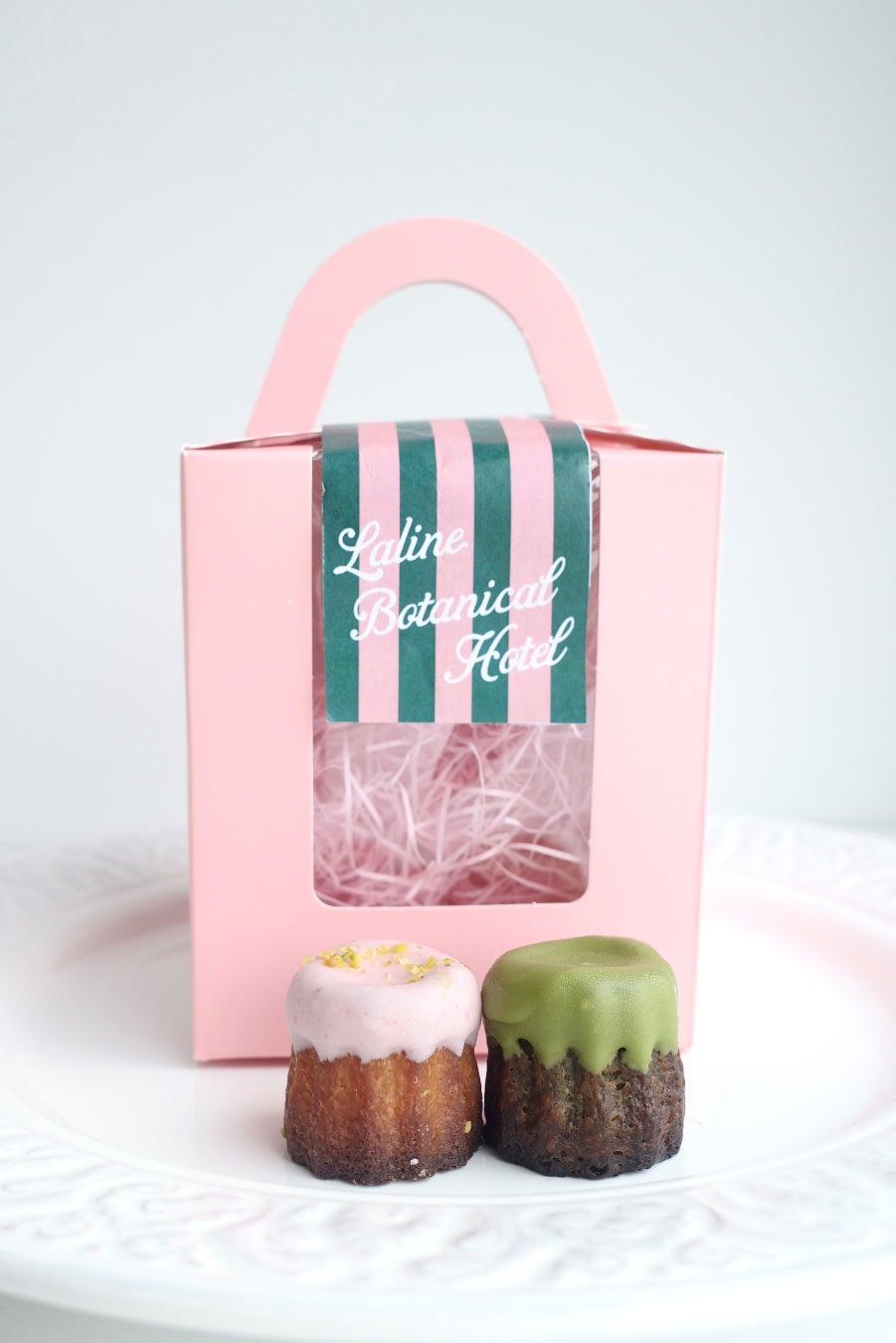 ・税込3,300円以上お買いあげで、大阪天六のスイーツショップ【ATELIER KATO(アトリエ カトウ)】の独自の製法で作り上げた「生カヌレ」をプレゼント。今回、あべのハルカス近鉄本店 ポップアップショップのために、ボタニカルホテルを表現したストロベリーと抹茶の特別フレーバーの2個セットでご用意しております。
