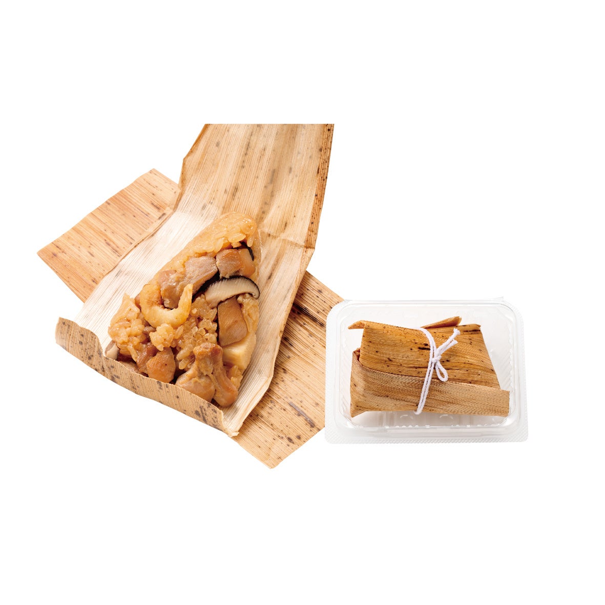 鶏肉、しいたけ、たけのこ、ほしえびを、もち米と一緒に炊き込み、具材の旨みをじっくり染み込ませました。ごろごろとした大きな具材たちは食感も楽しく、しっかりと食べ応えを感じられます。