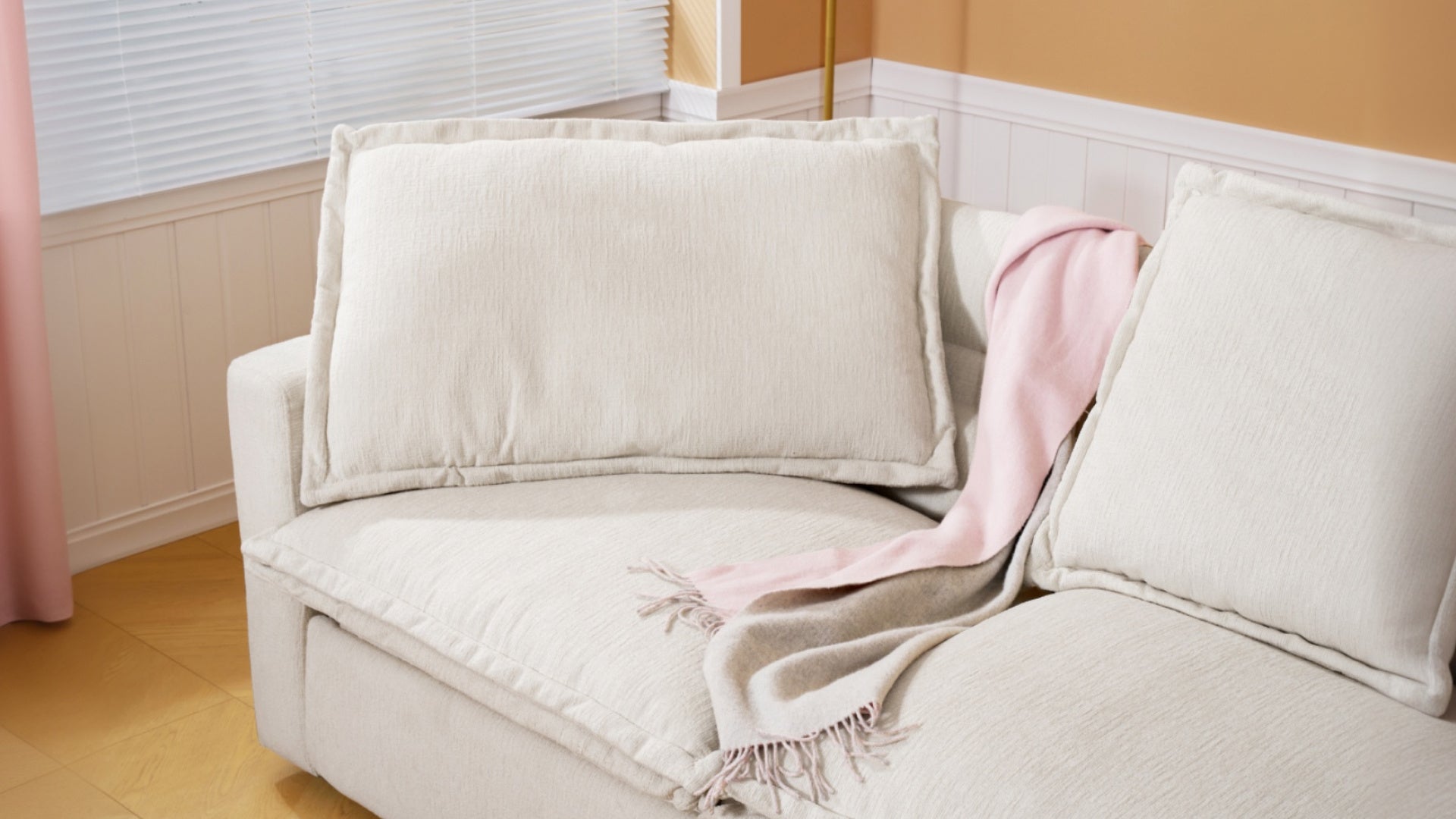 クッションはカバーリング仕様で、洗濯機で丸洗いできます。ソファ生地は手触りの良いファブリック生地を採用しています。表面は特殊加工が施され、ペットの爪などのひっかき傷に強い特徴があります。普段のお手入れは簡単。柔らかいきれいな布で、ほこりや表面の汚れを軽く乾拭きするだけで十分です。