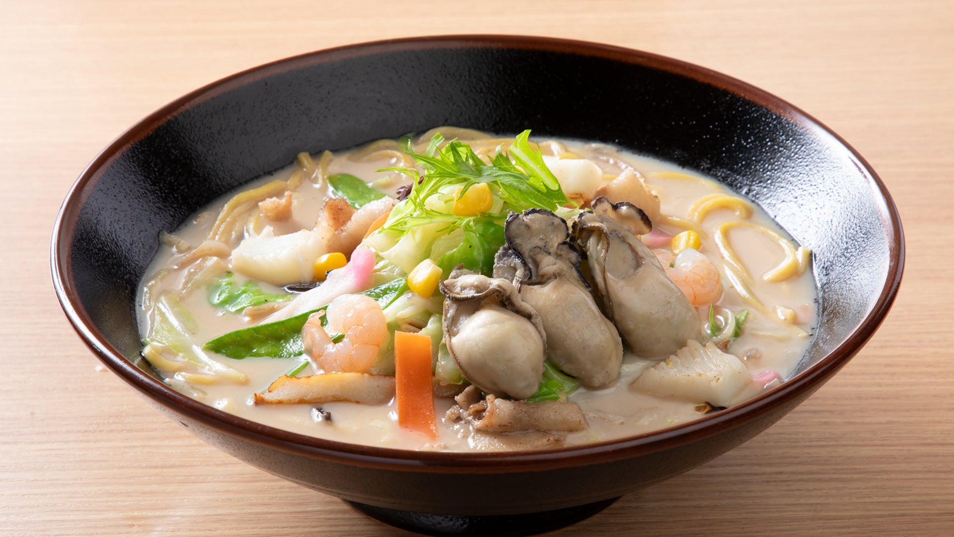 ちゃんぽんの良さとラーメンの良さを掛け合わせた ちゃんめん を看板メニューに西日本を中心に32 店舗を展開している「長崎ちゃんめん」では12 月5 日(木)から冬季限定ちゃんめんを発売いたします。まずは定番の牡蠣ちゃんめん。ぷりぷり大粒の瀬戸内産牡蠣3 個の食感と牡蠣の旨味がスープに溶け込んだコクのある海鮮の味をお楽しみください。また今年は北海道味噌を使用した牡蠣ちゃんめんも選べます。中辛口味噌の代表格「紅一点」を使用し濃厚味に仕立てております。沢山の野菜と牡蠣の旨味と濃厚な味噌味で、体の芯まで温めて、この寒い冬を乗り切りましょう。スタッフ一同、皆さまのご来店をお待ちしております。
