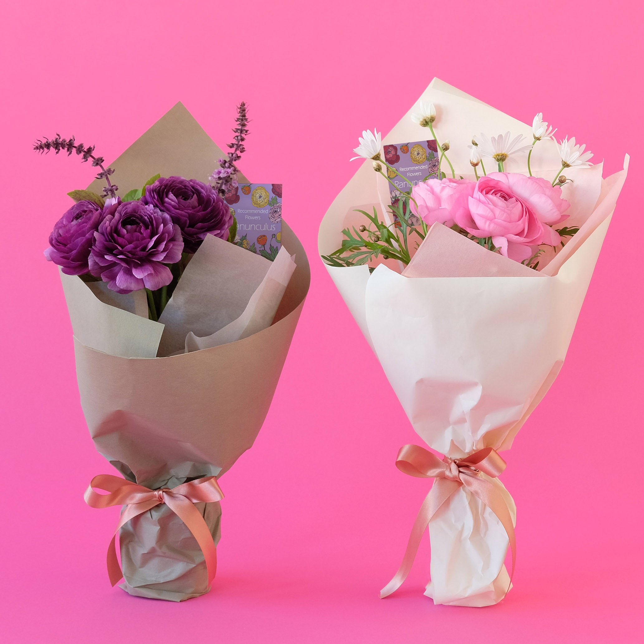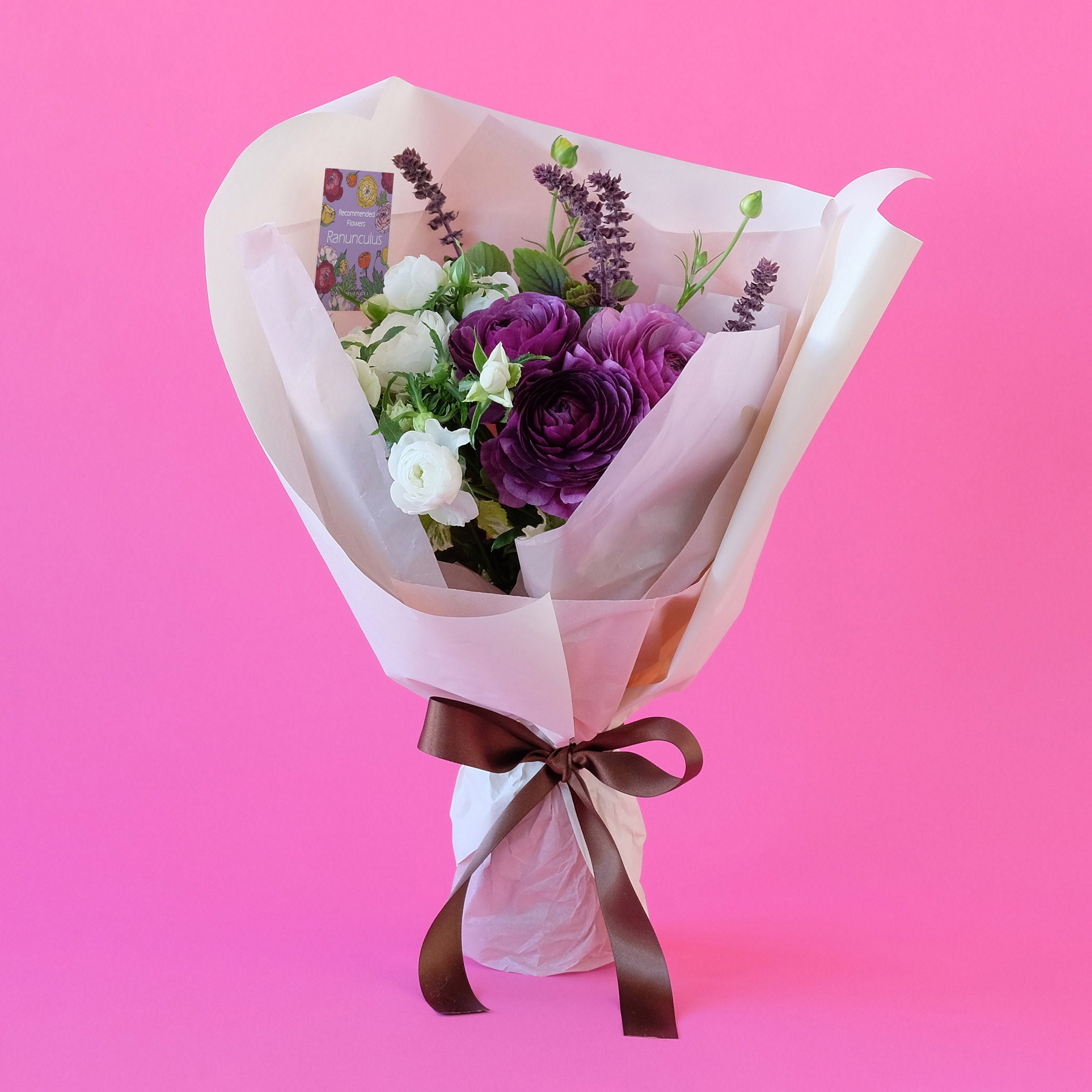 ショップおすすめのラナンキュラスをシンプルなブーケに仕上げました。