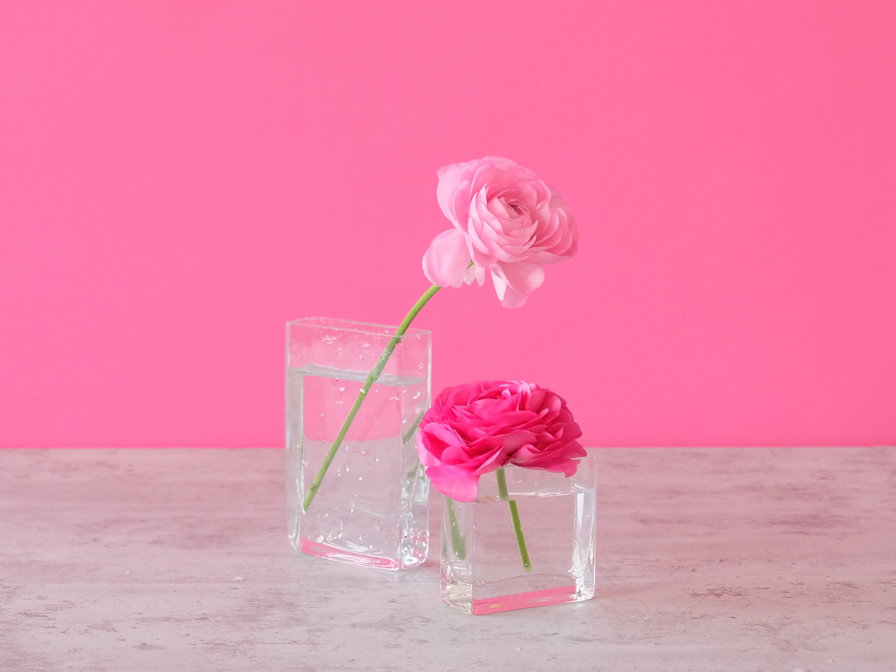 長持ちさせるポイントは、切り口を新しくして水を吸いやすくすることです。水替えの際にぜひ切り戻しを行ってみてください。また、長さは基本的に短い方が花持ちも良くなります。くたびれてきたら思い切って茎の長さを短くしてみましょう。