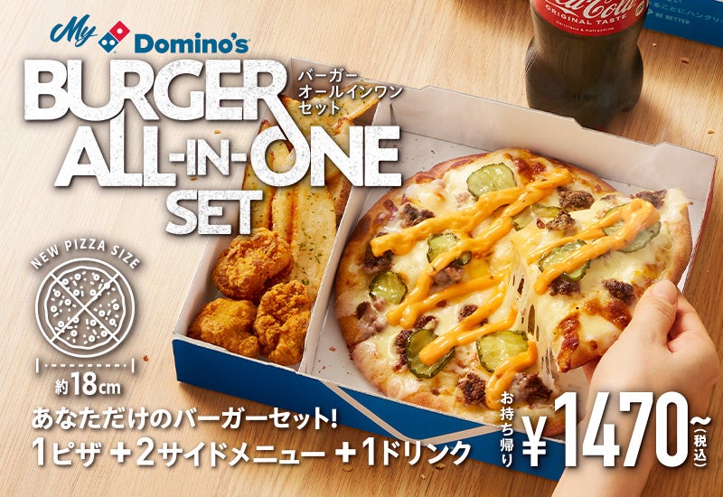 さらに、バーガーピザを独り占めできるおトクなセットメニュー『バーガーオールインワンセット』もご用意しました。