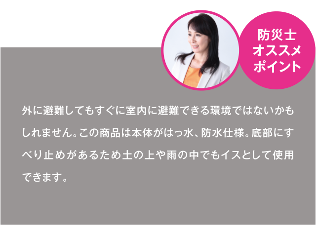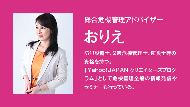 また、本品は総合危機管理アドバイザーおりえさんのお墨付き!おりえさんのオススメポイントも一緒にご紹介します!