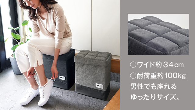 また、座面は約34cmとゆったりサイズなので、男性でもラクラク座ることができます。