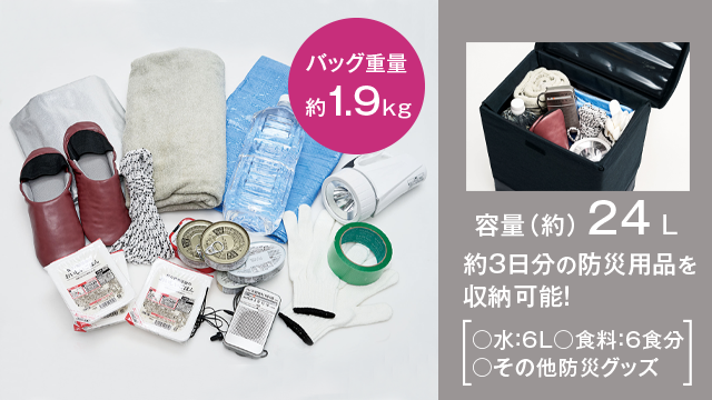知恵とアイデアをギュッと詰め込んだ防災バッグ。
