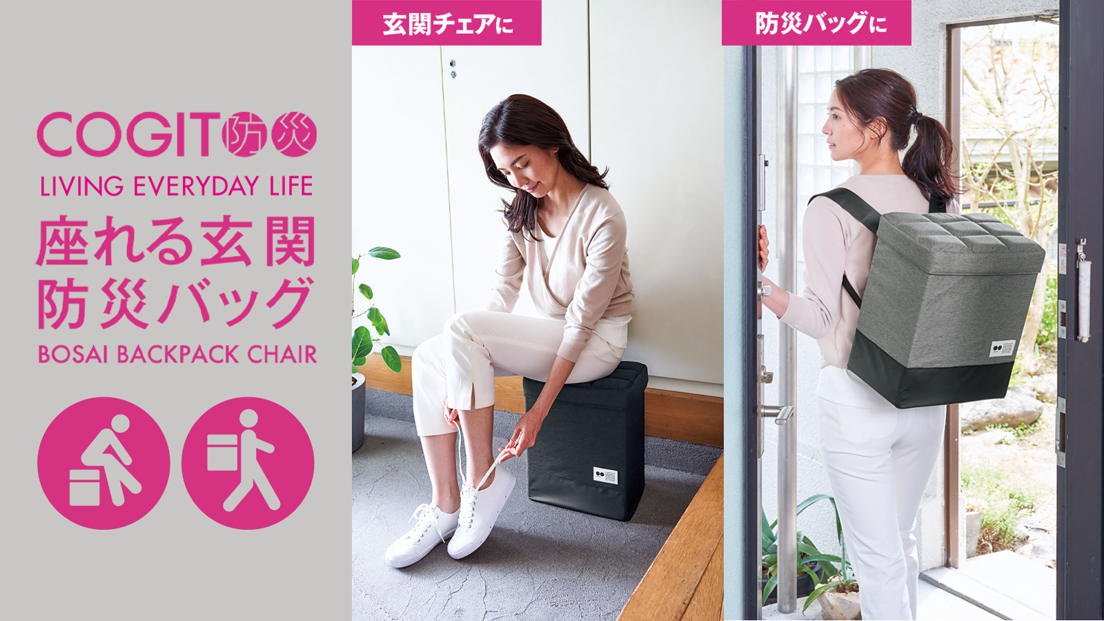 株式会社コジット(本社:大阪府大阪市、代表取締役:久保慎一郎)は、創業50年のノウハウと、企画マンのひらめきが生んだ防災バッグ「COGIT防災 座れる玄関防災バッグ ブラック/グレー」を応援購入サービスMakuakeにて2022年7月6日(水)より先行販売を開始いたしました。