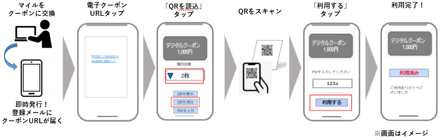 ●交換マイル数に応じてサービスをご利用できる、電子クーポンが発行されます