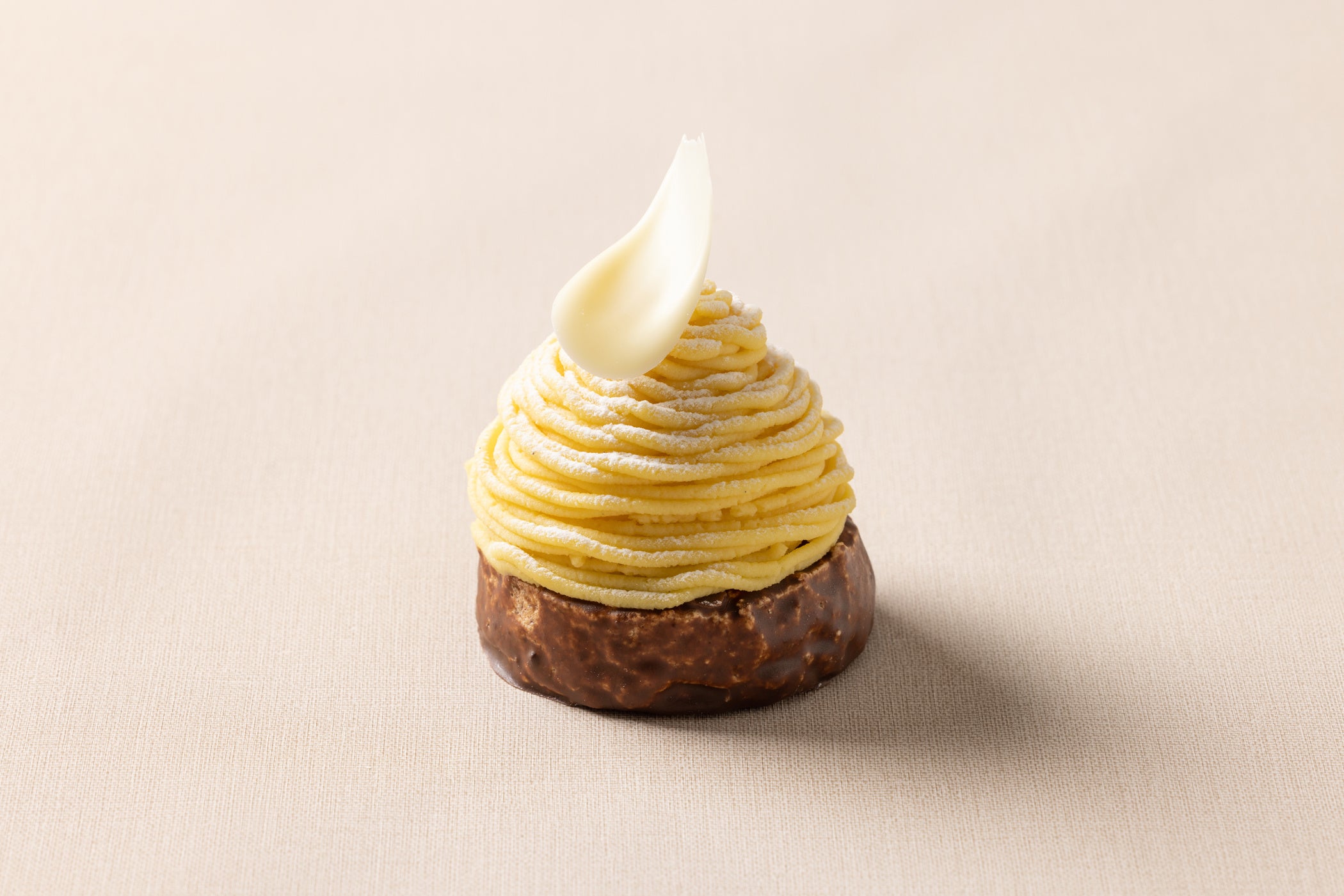 国産の生栗を炊いてつくる、上品ながらもどこか懐かしい甘さの特製マロンクリームで仕上げるモンブランです。チョコレートでコーティングした焼きメレンゲのサクサクとした食感と、栗本来の味が楽しめる馴染みのあるモンブランに仕上げます。