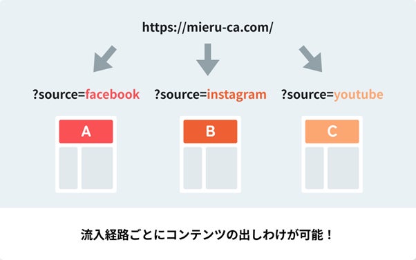 編集した内容を適用する先として、パラメータやデバイスを指定できるため、流入元やデバイスごとにコンテンツを出し分けたり、訴求を変えたりすることも可能です。