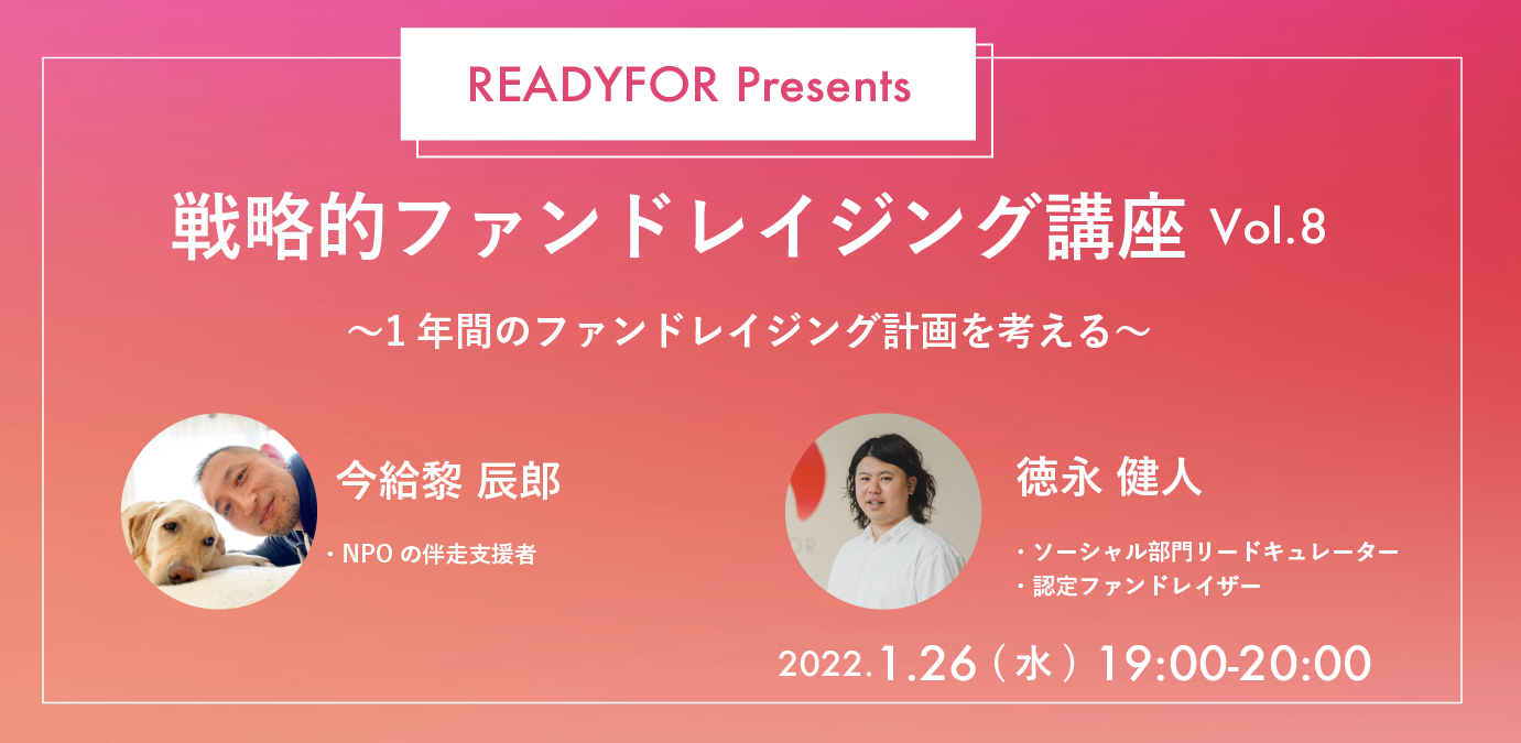 【1/26(水)開催ウェビナー】READYFOR主催 戦略的ファンドレイジング講座 Vol.8