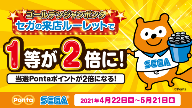 セガのゲームセンターの1等当選Pontaポイントが2倍に!『ゴールデンジャンポンタ』 開催のお知らせ