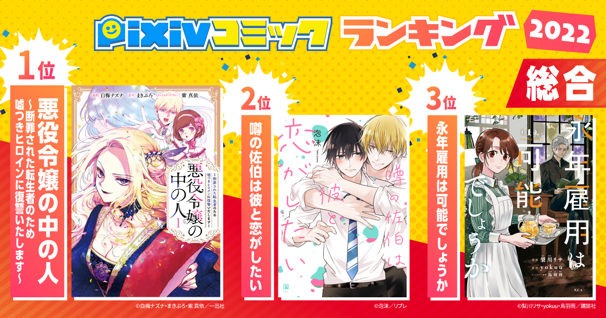 今年ならではの人気マンガ作品が集結!「pixivコミックランキング2022」を発表!ランキング受賞作品を対象としたプレゼントキャンペーンも開催