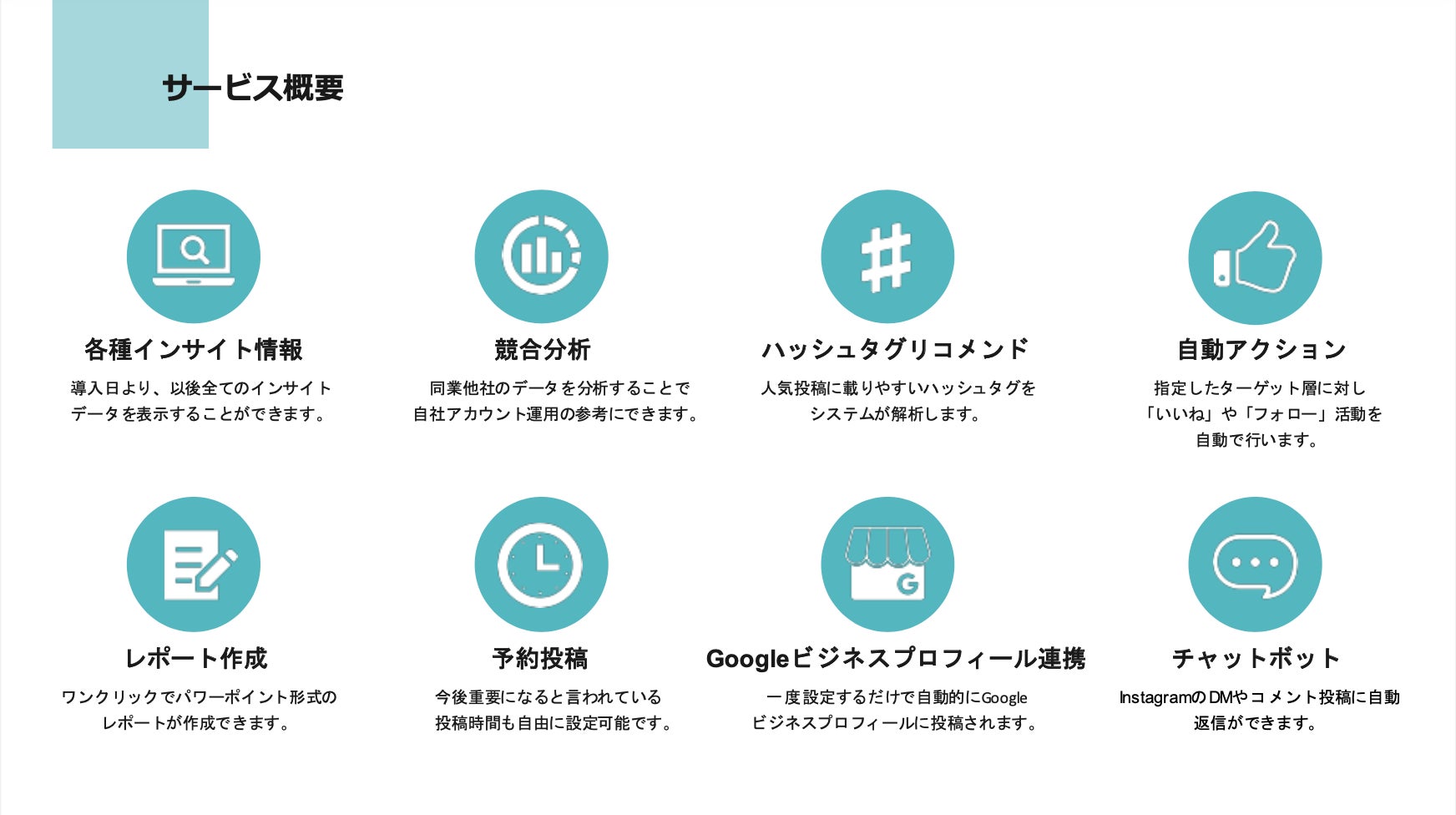 エンゲージメントの高いユーザーを分析し、自動で「いいね!」やフォローなどを行う「フォロワー獲得」機能は特に優れた点と言えます。