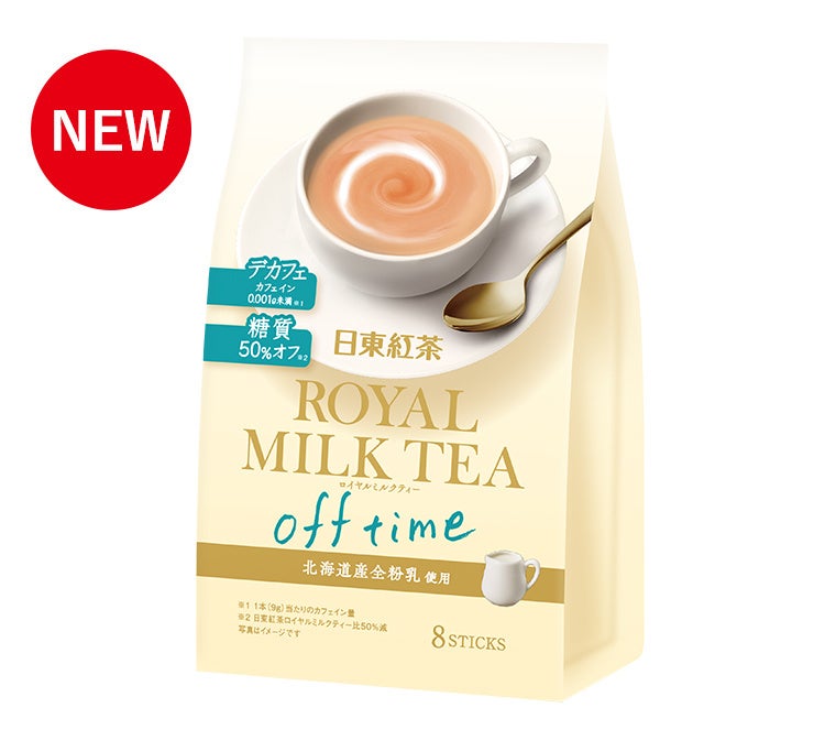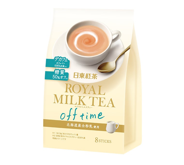 健康意識の高まりと共に増加する「余分なものを摂らないニーズ」に応えるべく、デカフェ(1本(9g)当たりカフェイン0.001g未満)、糖質50%オフ(日東紅茶ロイヤルミルクティー比)を1つの商品で実現した商品です。北海道産全粉乳を使用し、素材にもこだわりました。