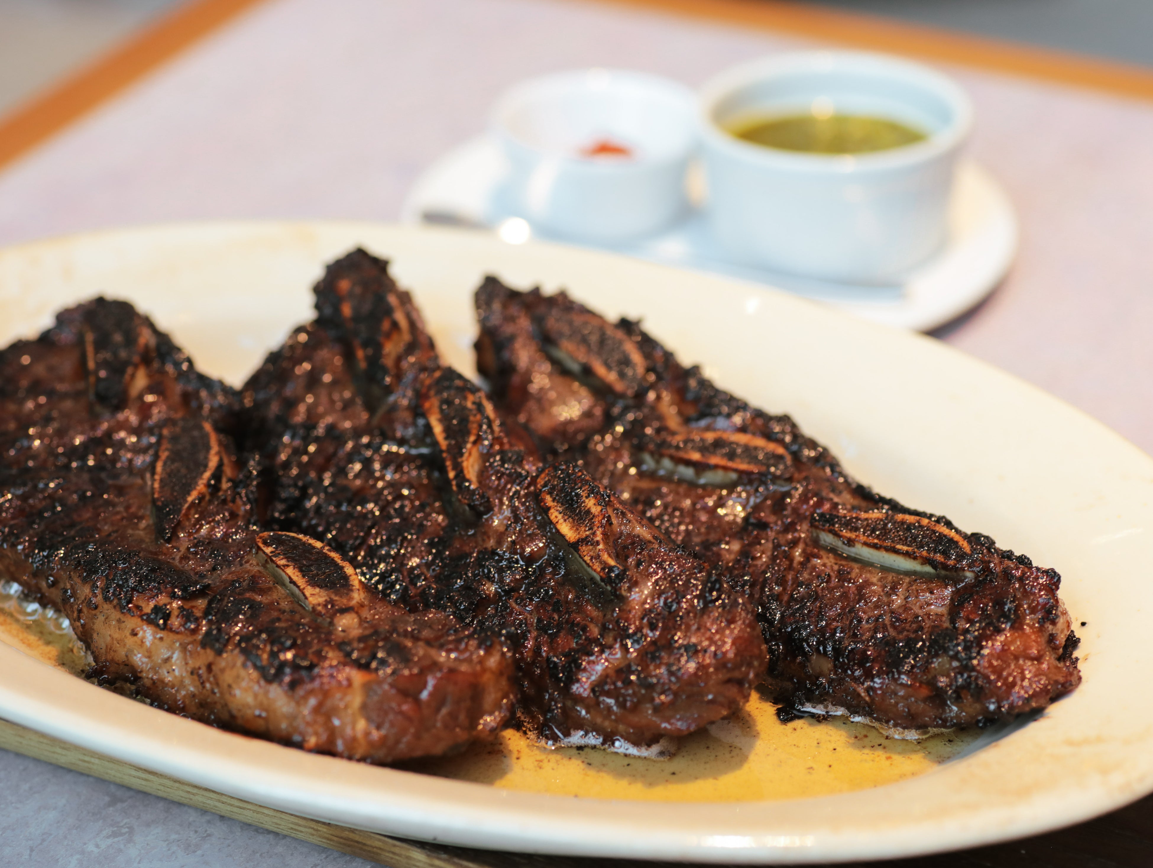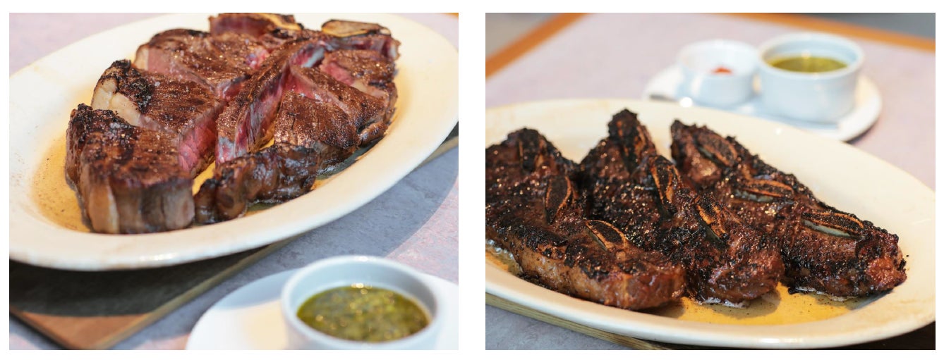 ※左から Tボーンステーキ 1000g/¥18,000-、骨付きショートリブ 1000g/¥13,000-