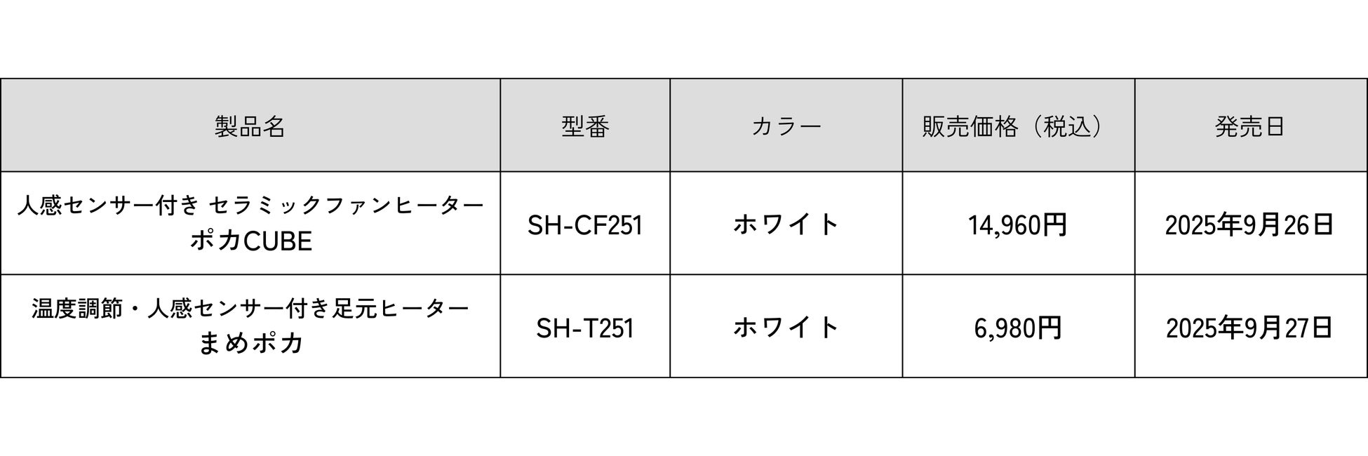 シロカ株式会社(東京都・千代田区)は、冬場のヒートショック対策に役立つコンパクトなスポット暖房、「人感センサー付き セラミックファンヒーター ポカCUBE」と「温度調節・人感センサー付き 足元ヒーター まめポカ」の2025年モデルを発売します。
