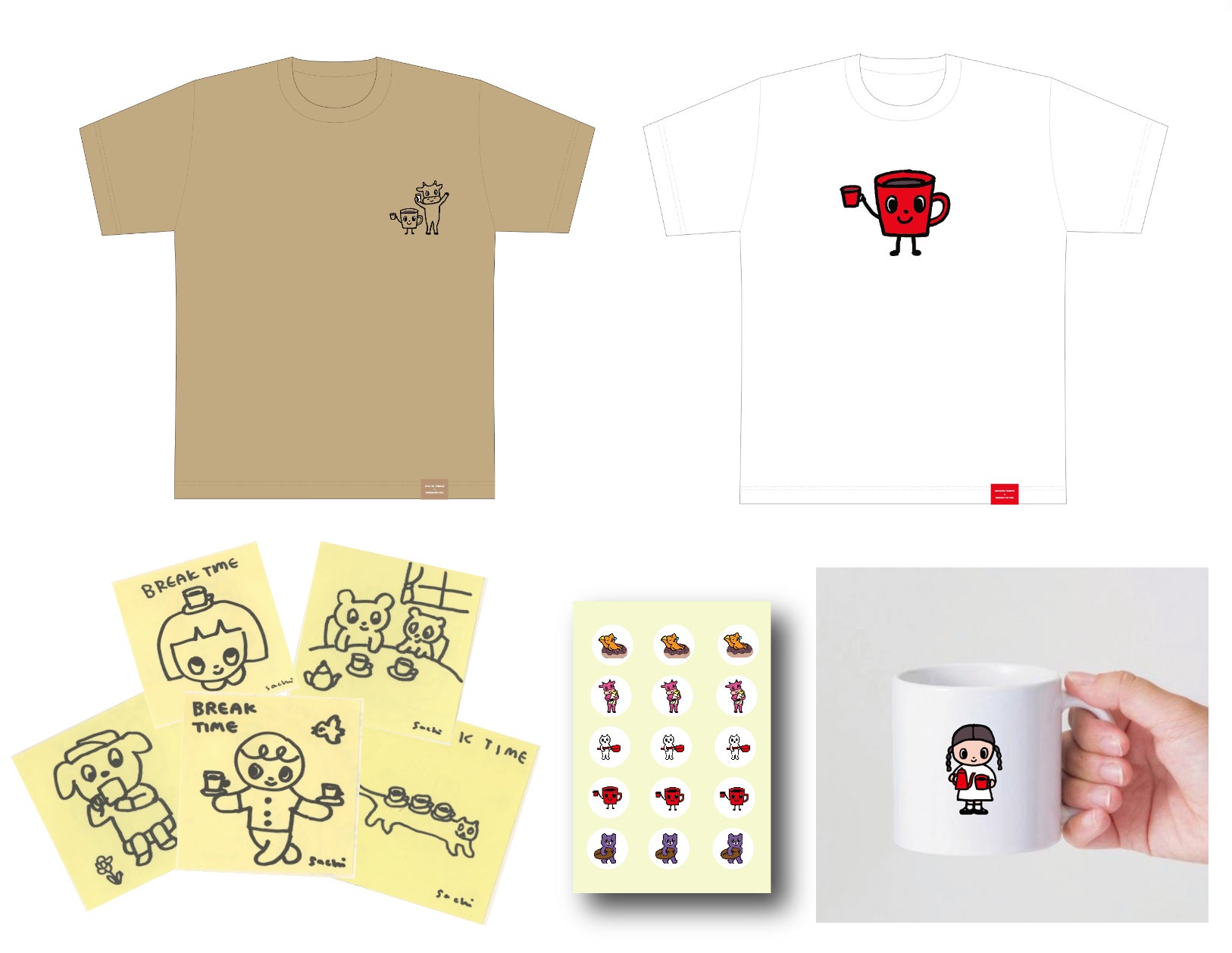 コーヒーようちえんTシャツ(2種)各3,300円/コーヒーようちえんコースター(5種)各300円/コーヒーようちえんシール 価格未定/コーヒーようちえんマグカップ1,300円(いずれも税込)