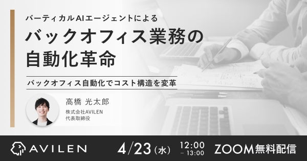 株式会社AVILEN(本社:東京都中央区、代表取締役:高橋 光太郎)は、企業の業務効率化と革新を実現する「AIエージェント」の有用性を、全3回のウェビナーで分かりやすく解説します。各回は、営業・コールセンター・バックオフィスの各テーマに特化し、実際の導入事例も交えつつ具体的な効果と活用法をお伝えします。