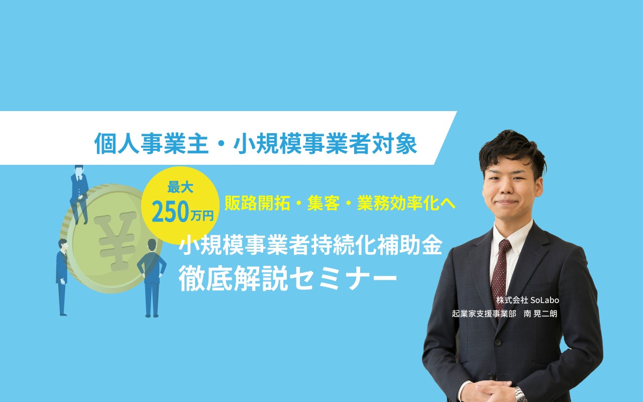 本セミナーでは、販路開拓や業務効率化を目的とした事業に活用できる小規模事業者持続化について詳しく解説いたします。この補助金は対象事業者や申請方法が比較的わかりやすいため、創業期の事業者、補助金を使ったことのない人も活用しやすい補助金です。