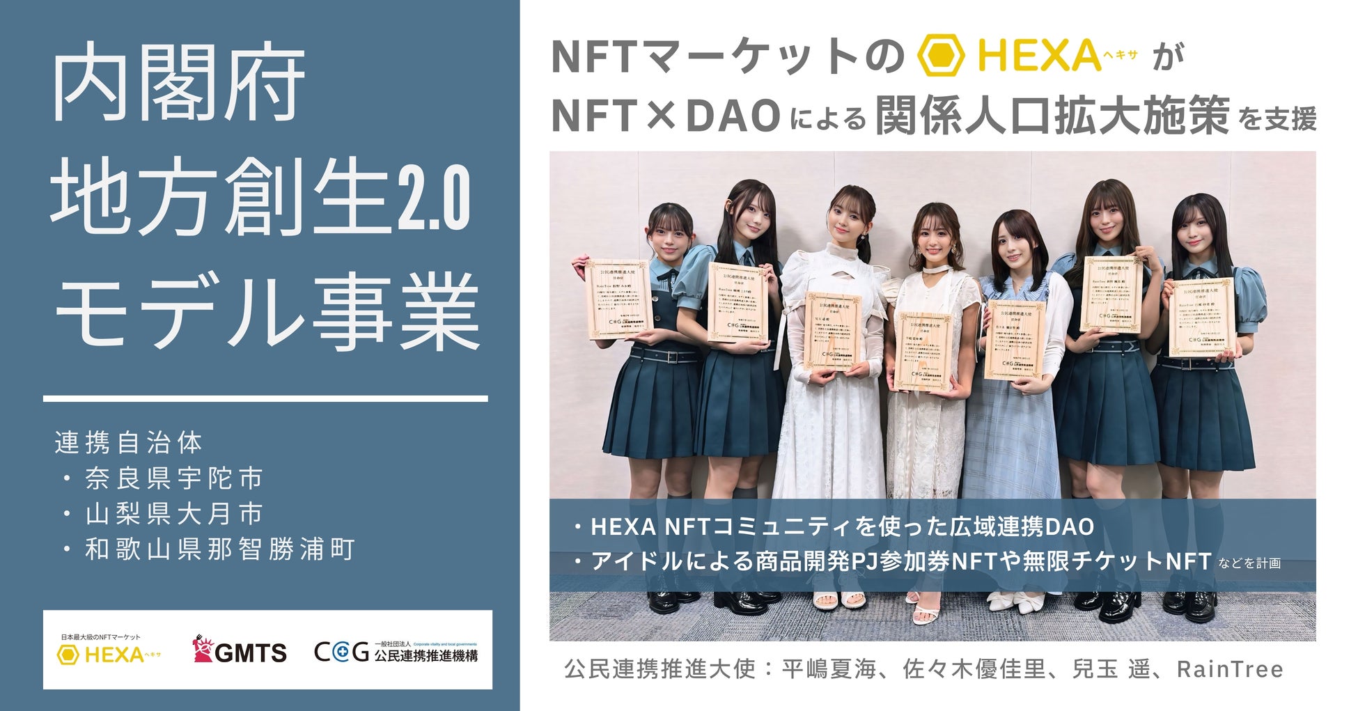 日本最大級のNFTマーケット「HEXA(ヘキサ)」は、内閣府「新しい地方経済・生活環境創生交付金 Type V」の交付決定を受けた3自治体のNFT施策を支援します。