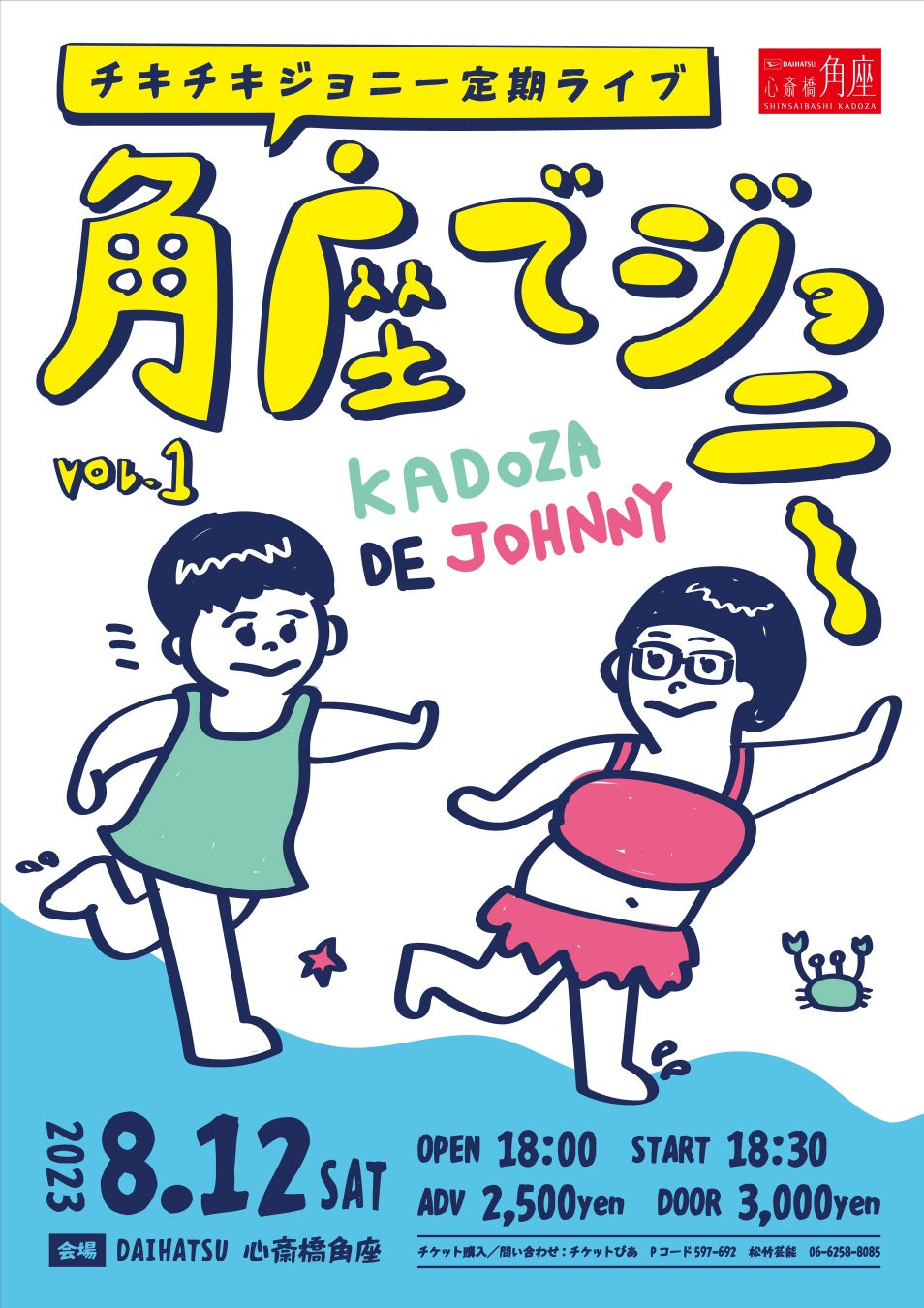 昨年、第77回文化庁芸術祭優秀賞を受賞したチキチキジョニーがDAIHATSU 心斎橋角座で新ライブ「角座でジョニー」を開催します。芸歴20年を超えさらに勢いづいた二人の漫才と親しみやすいトーク、緩急織り交ぜた話芸をお楽しみいただけます。