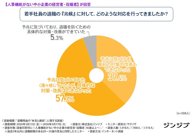 一方で中小企業の経営者やマネージャーの57.3%が「退職の予兆に気づきながら、具体的な対策・改善ができなかった」と回答しました。