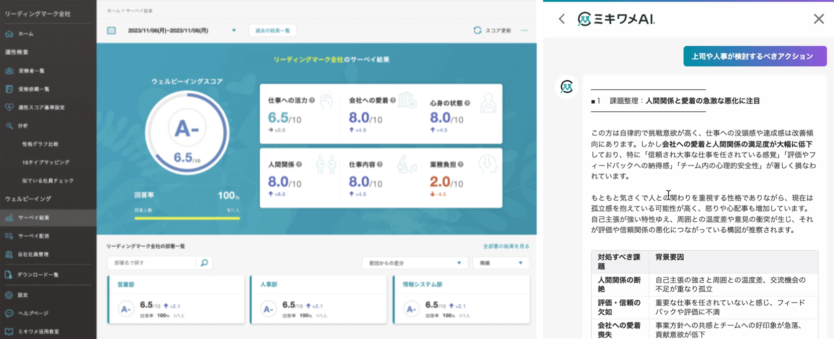 -社員のメンタル状態を可視化し、性格をもとにアドバイスをすることでウェルビーイングを実現「ミキワメAI ウェルビーイングサーベイ」
