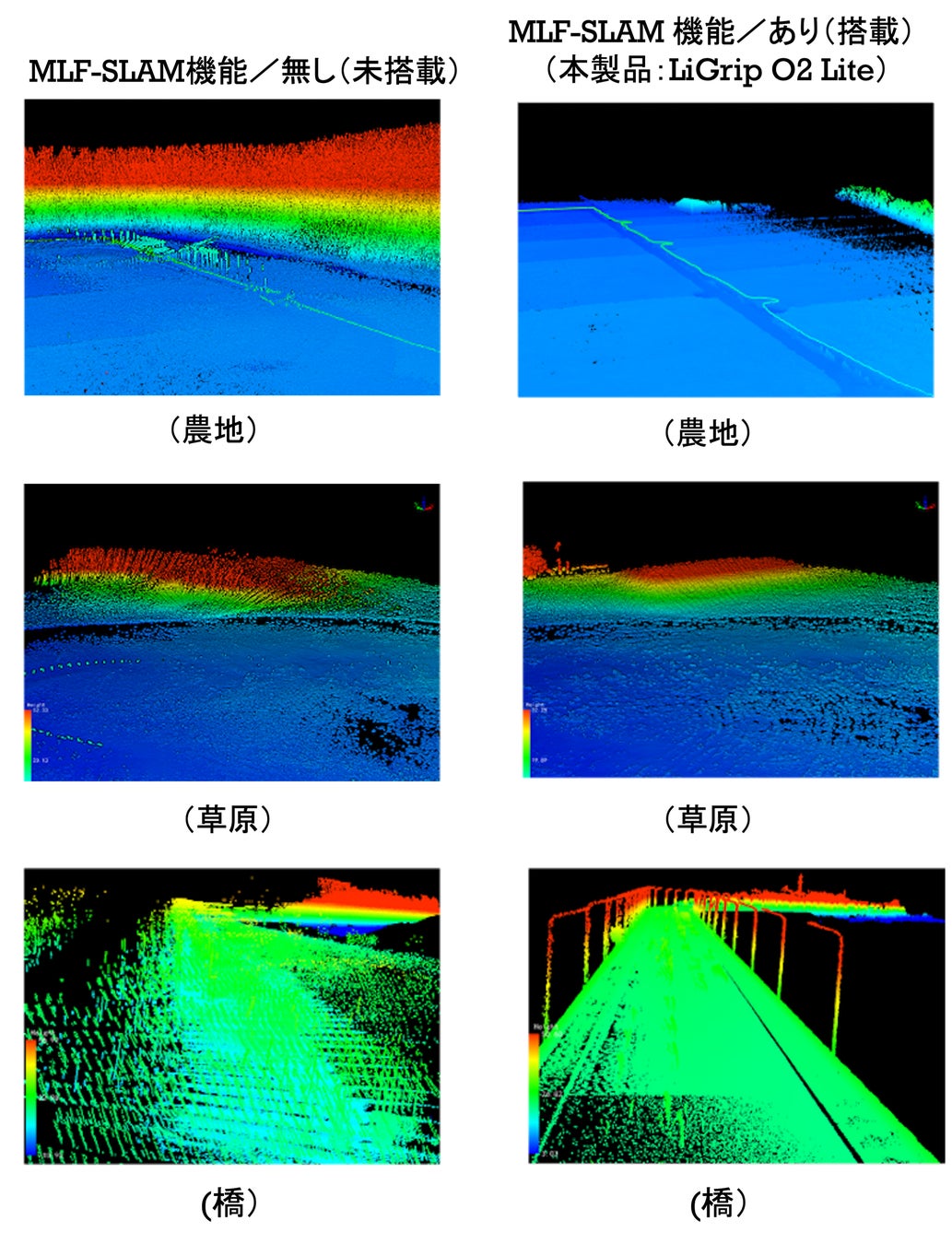 マルチセンサー融合測位技術である「MLF-SLAM アルゴリズム」を統合することで、従来製品ではマッピングが難しかった環境(空港、ビーチ、水域など)での高精度マッピングを可能にしています。