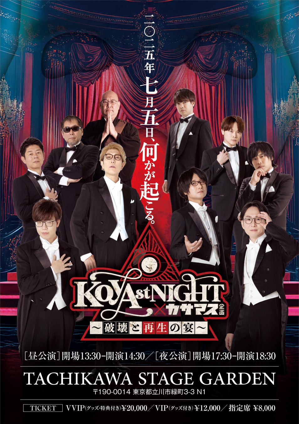 また、都市伝説ファンなら意識せざるを得ない”2025年7月5日”に開催する「KOYA st NIGHT×カサマス企画 ~破壊と再生の宴~」のチケットは、チケットぴあにて 6月14日(土)23:59までプリセール(先着)の販売を実施。